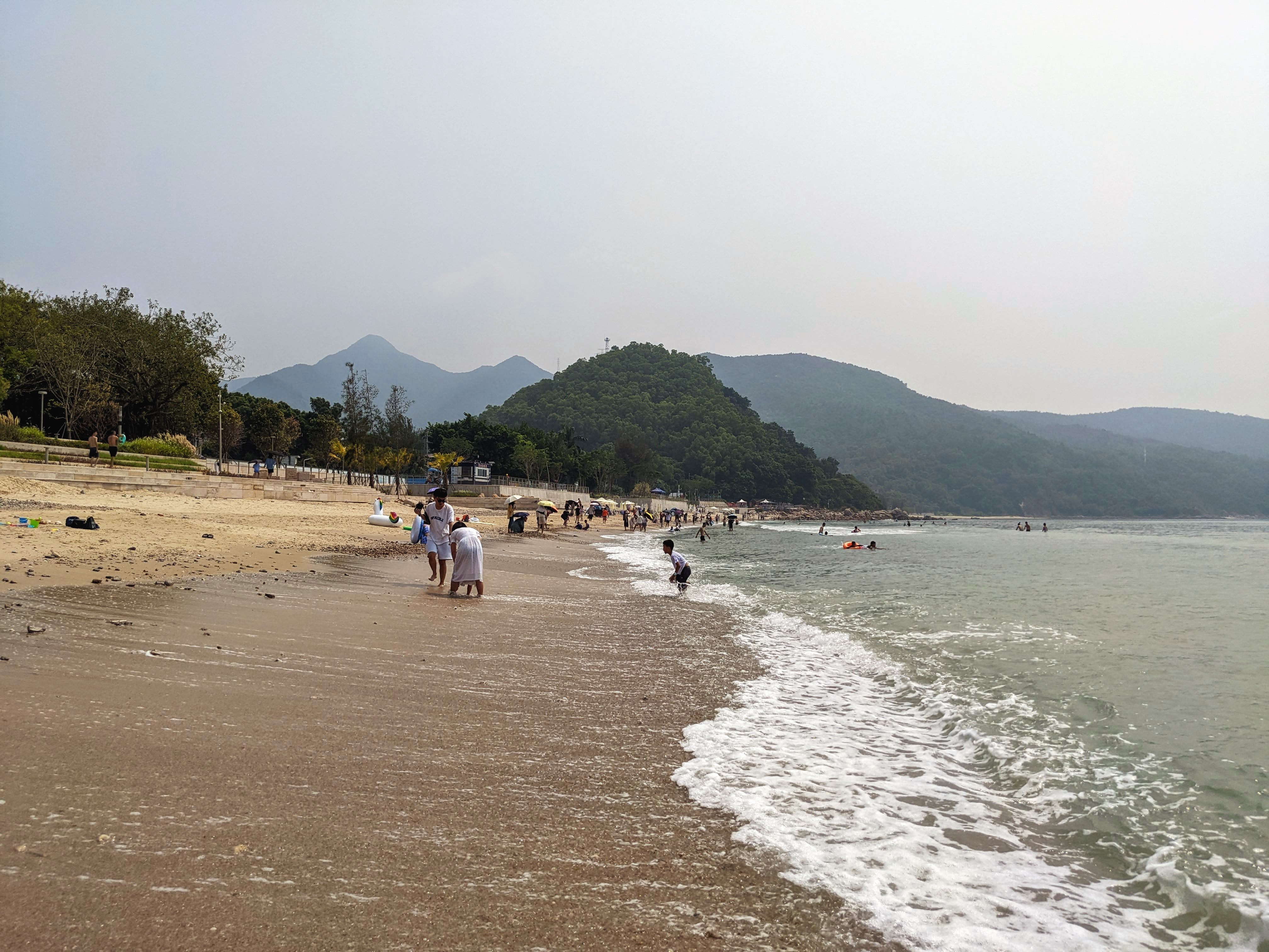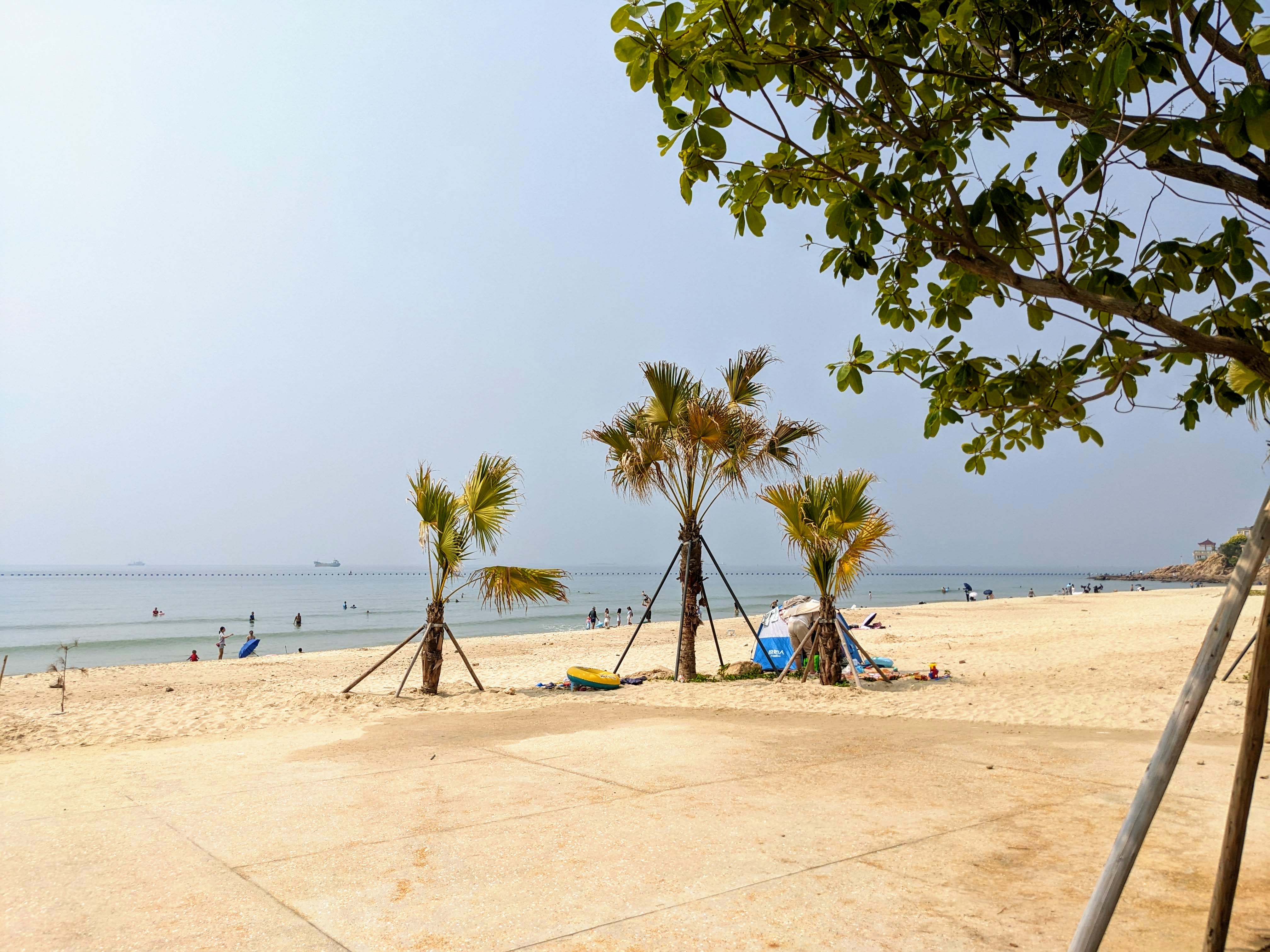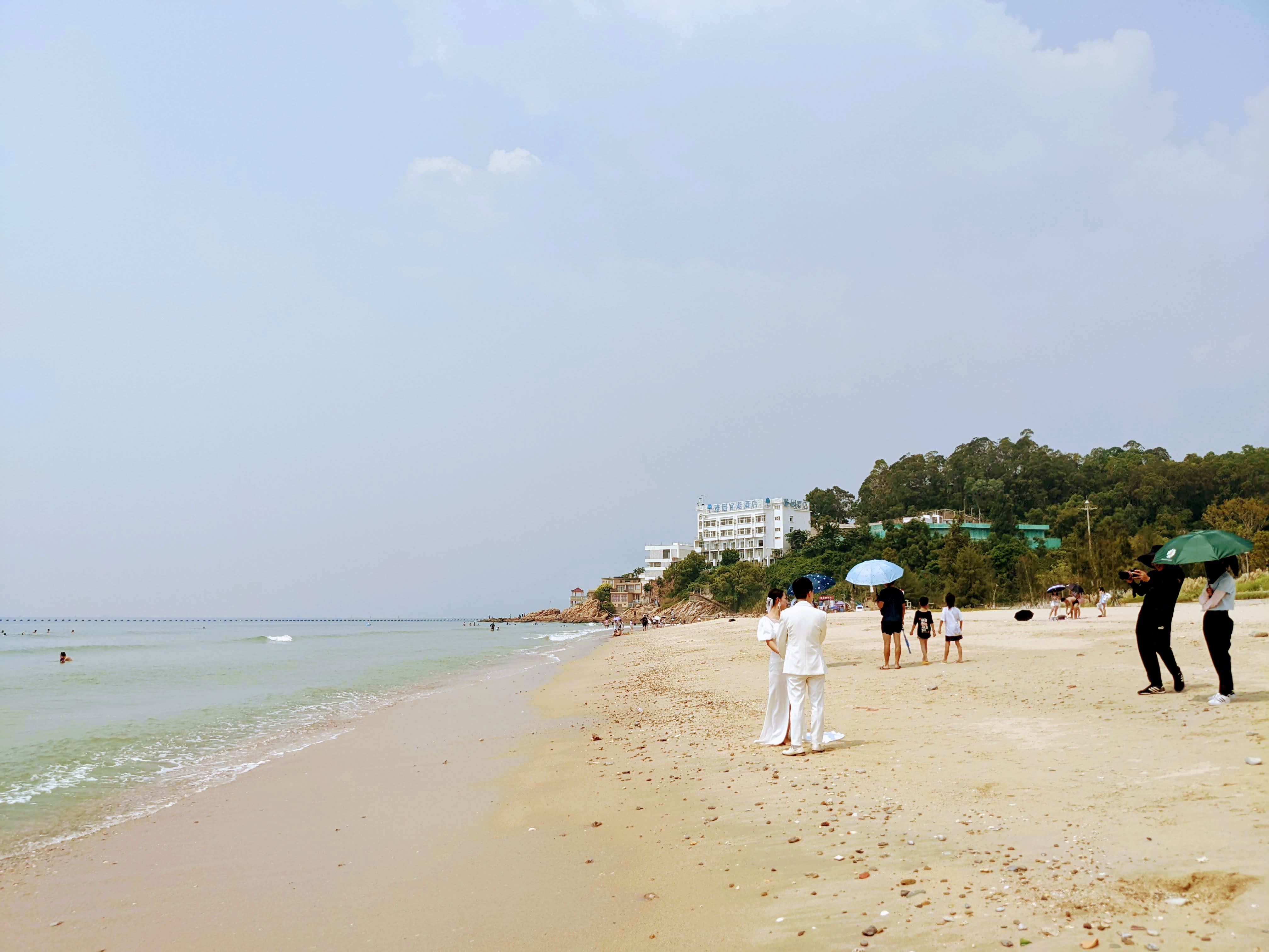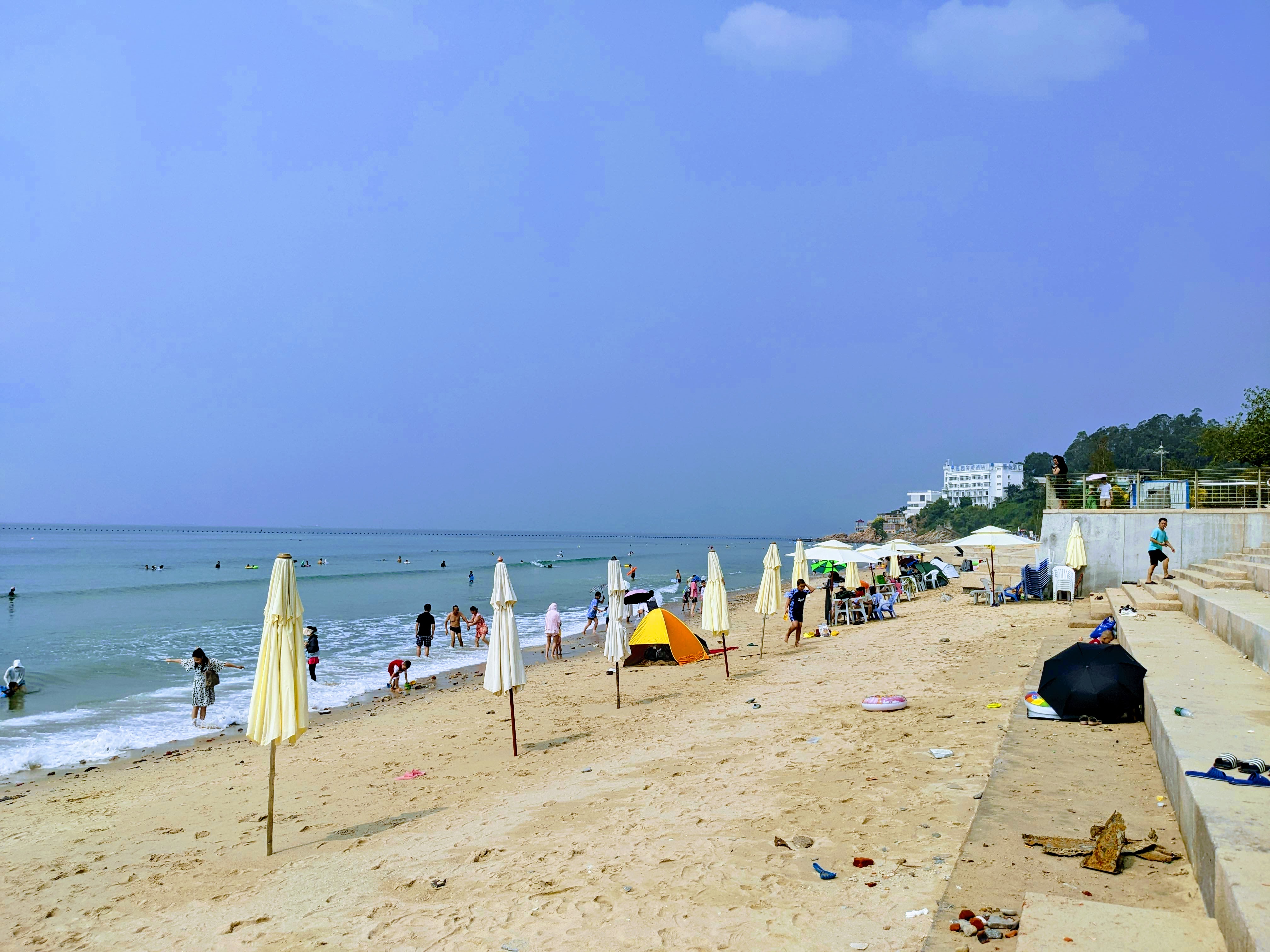 来深圳多年,没想到离住处一小时车程以内,还有沙滩如此洁净、海水如此清澈的去处,它,就是位于深圳市龙岗区葵冲街道的官湖村的官湖海滩。