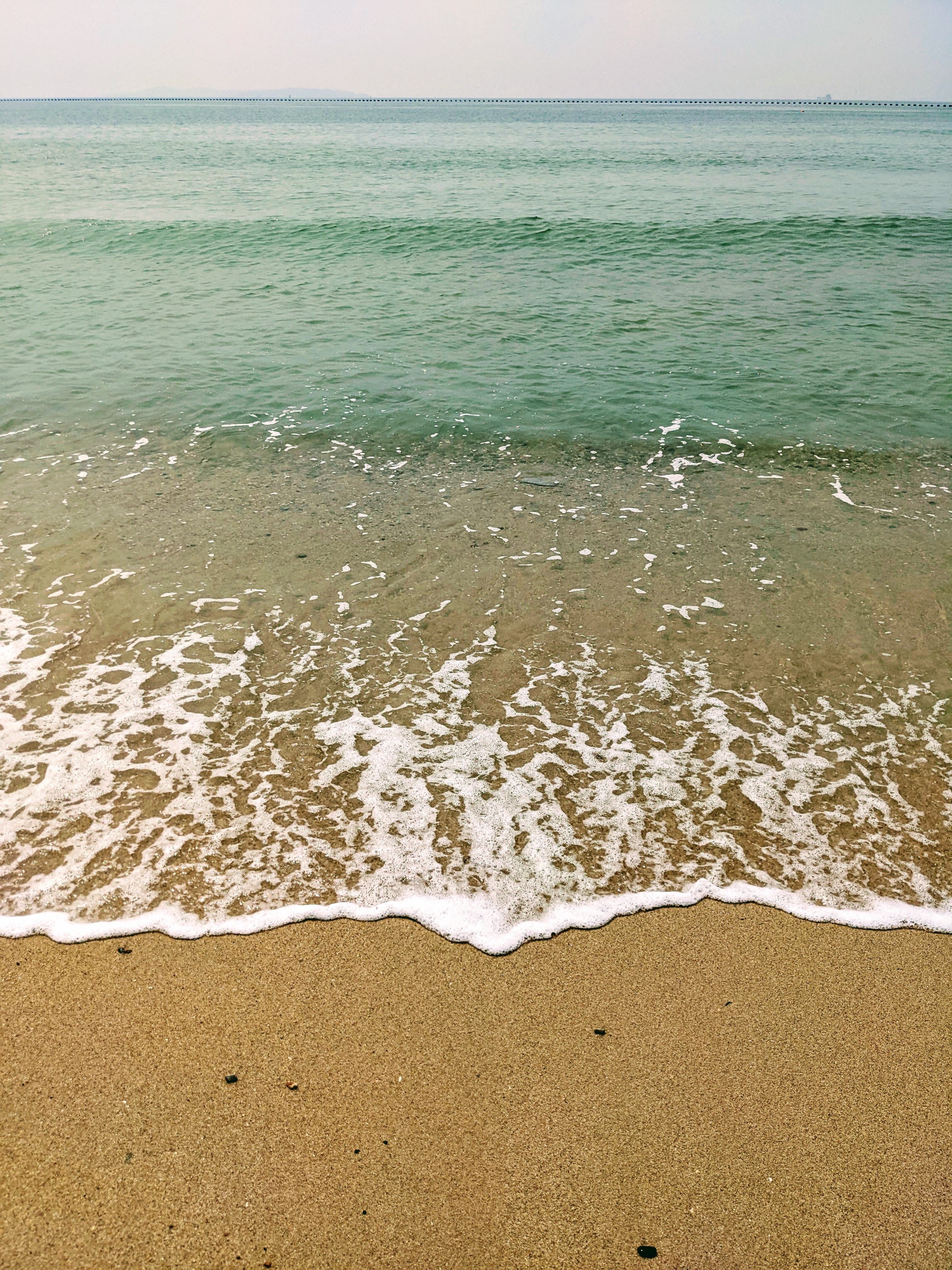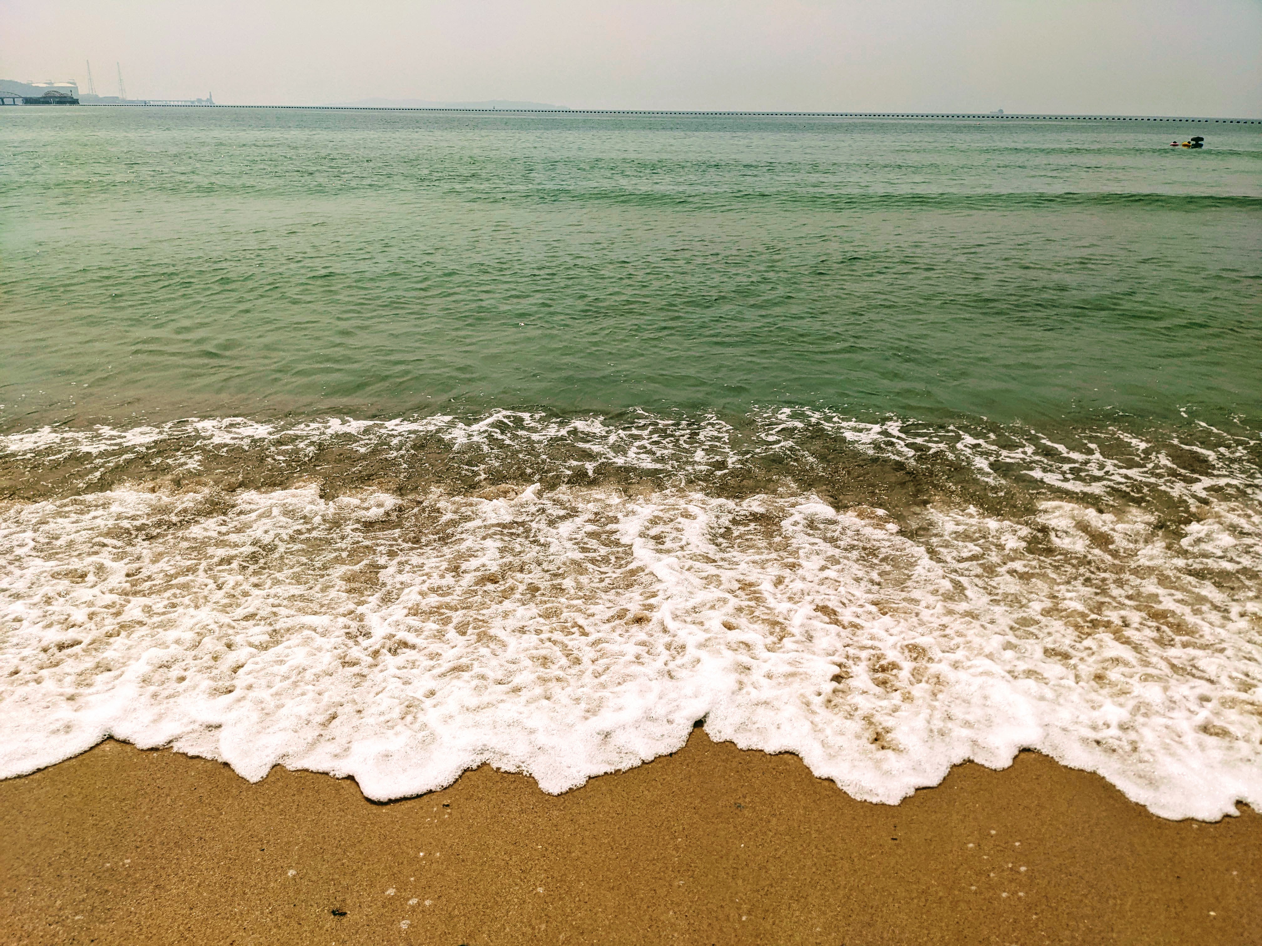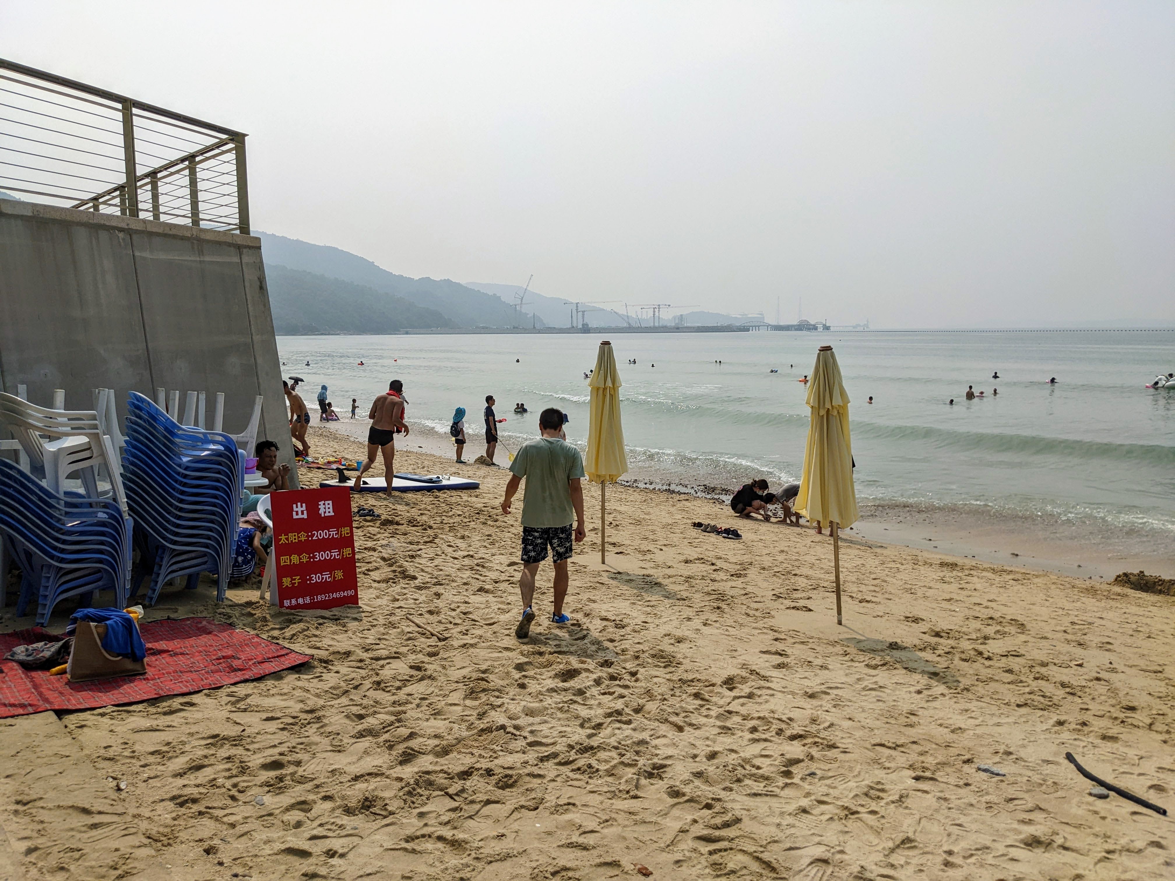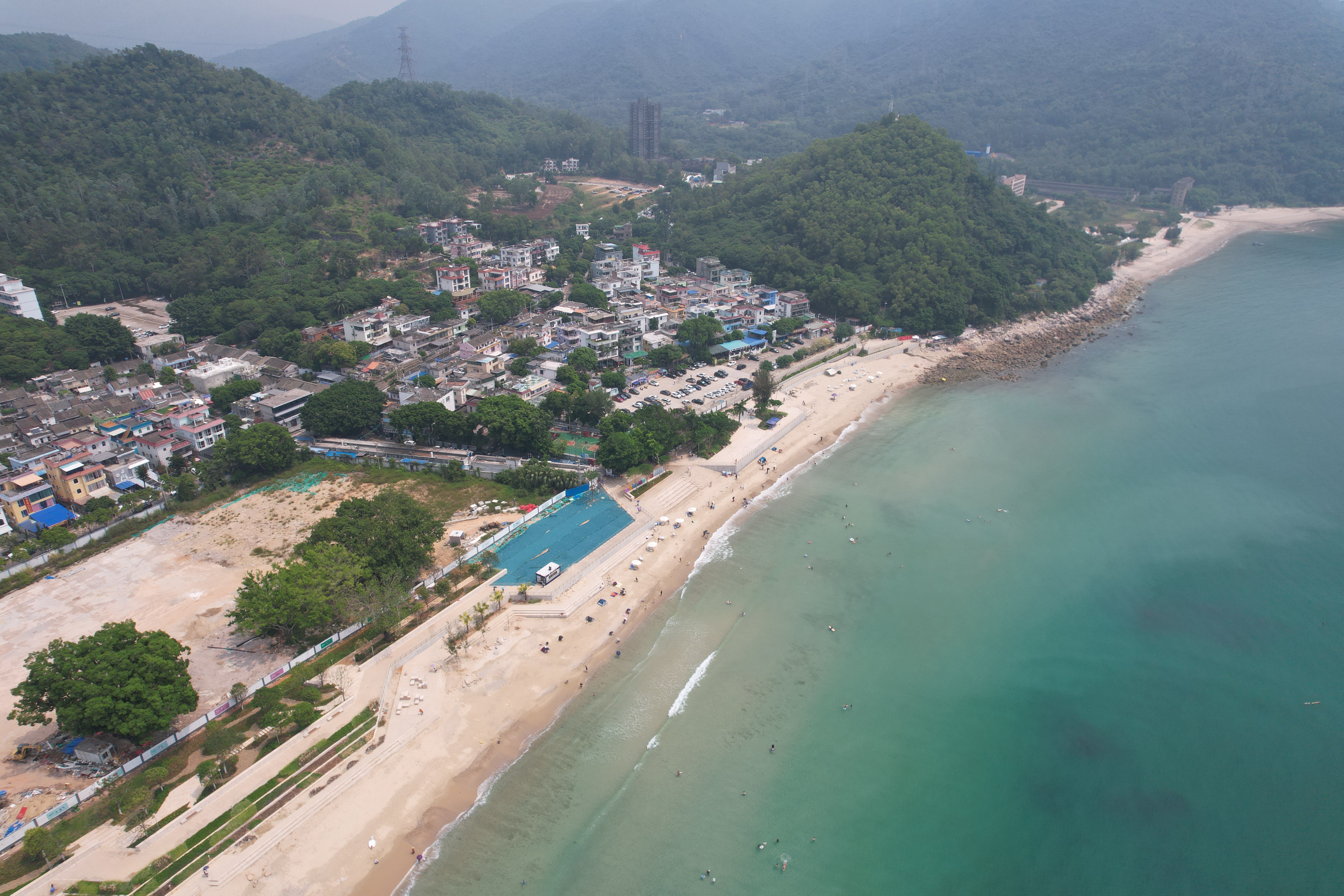 来深圳多年,没想到离住处一小时车程以内,还有沙滩如此洁净、海水如此清澈的去处,它,就是位于深圳市龙岗区葵冲街道的官湖村的官湖海滩。