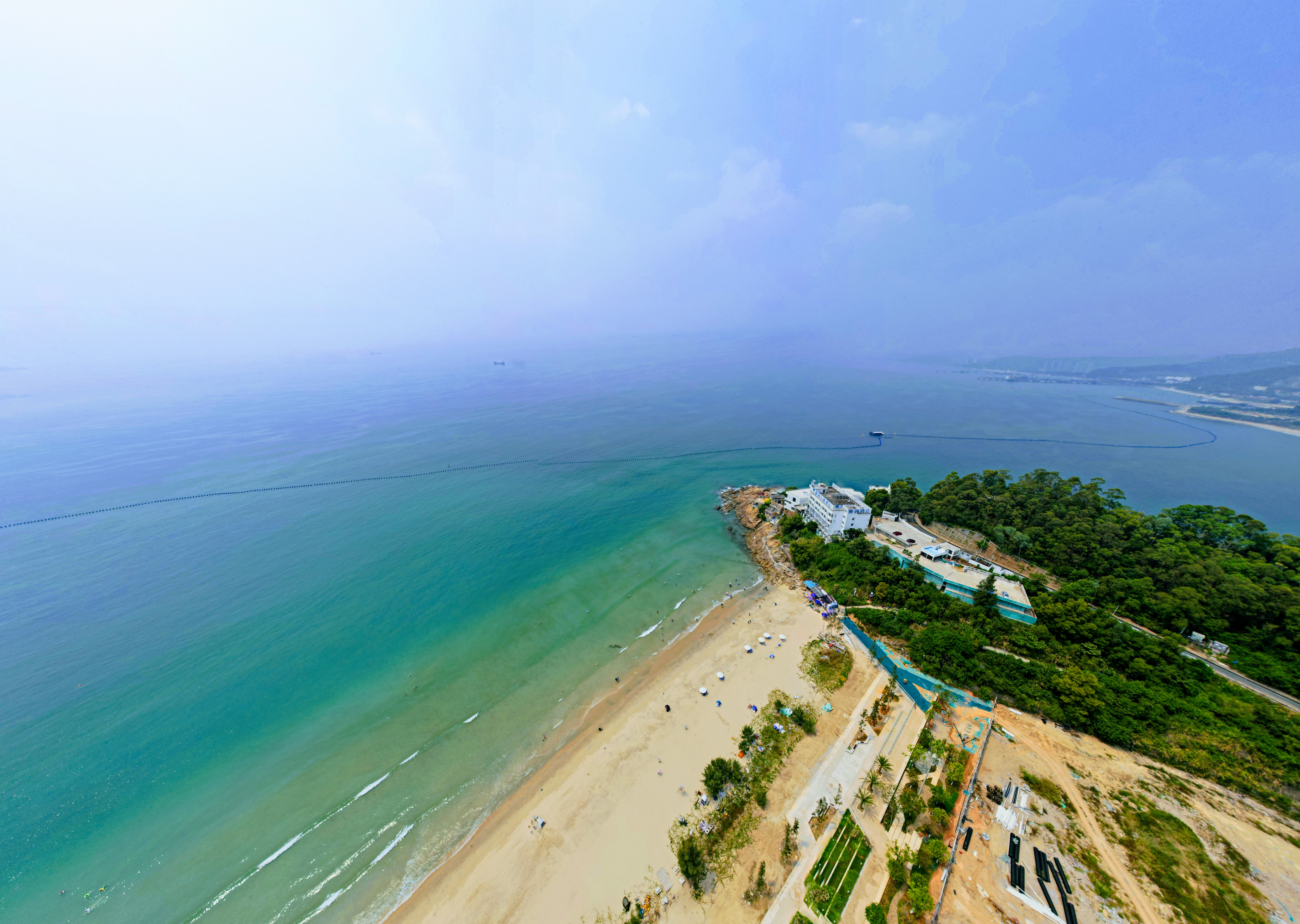 借助无人机的空中视角,不用搭乘飞机直升机,官湖海滩的周围全貌就得以呈现在你我的眼前,方便以后随时查看: