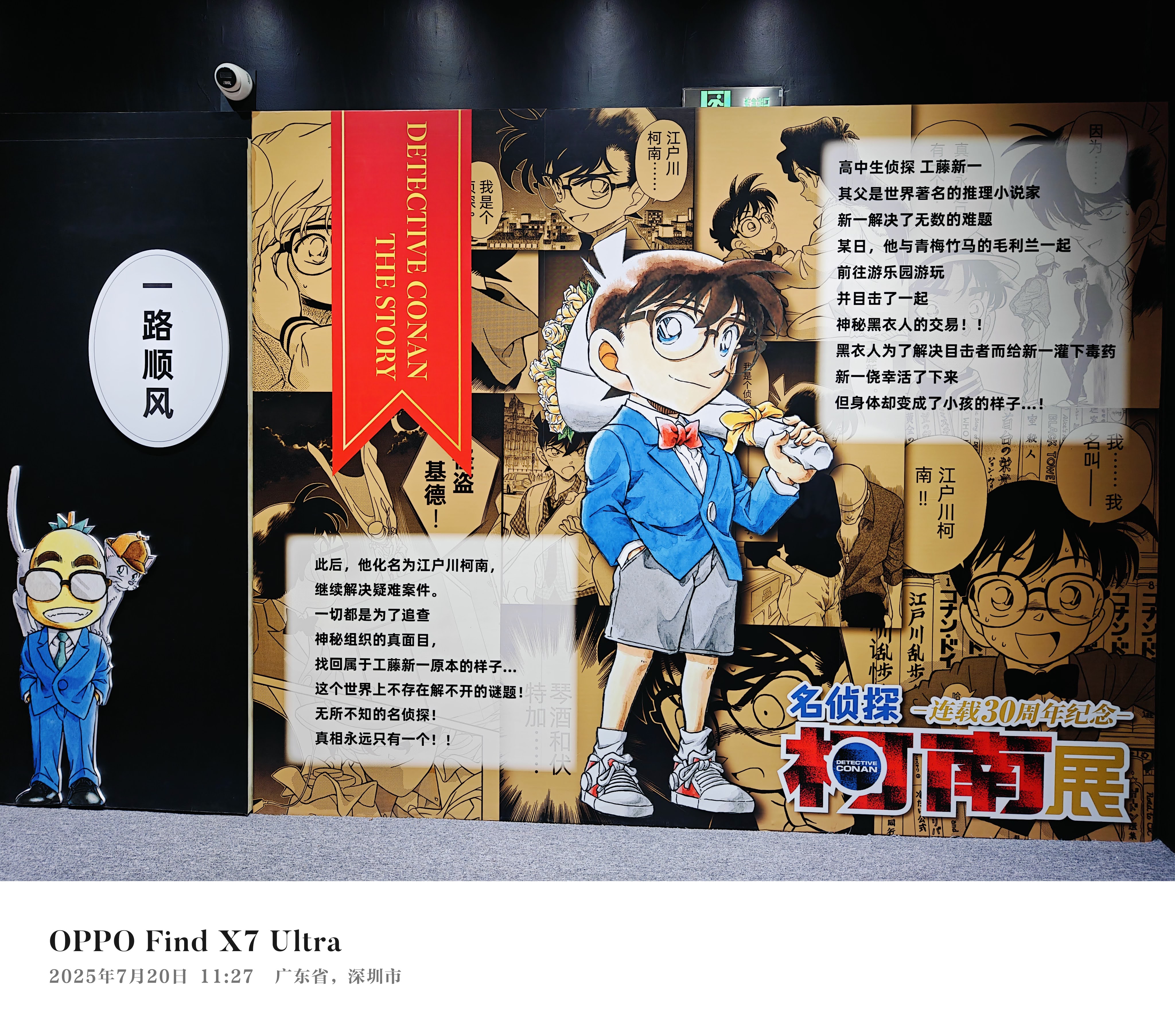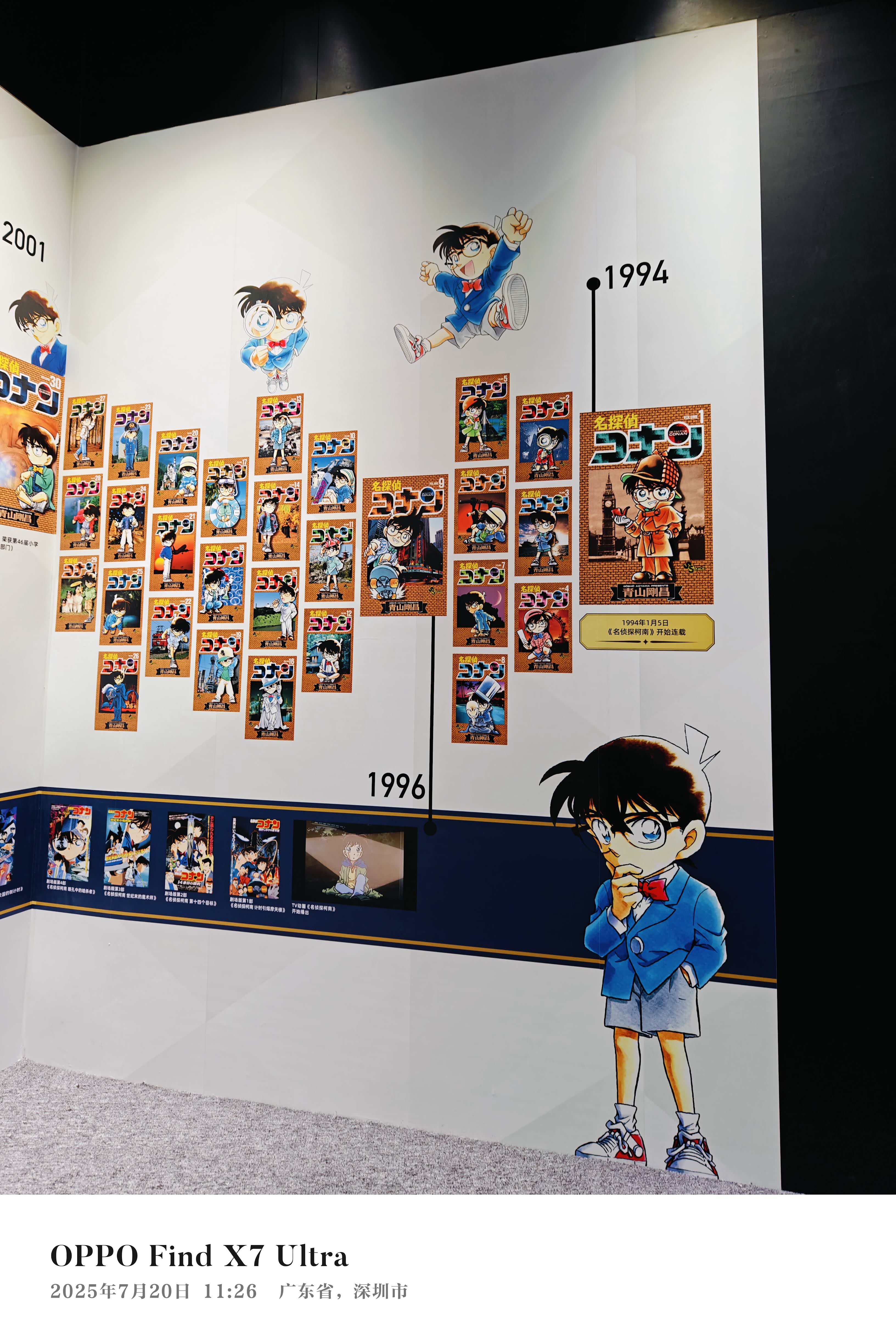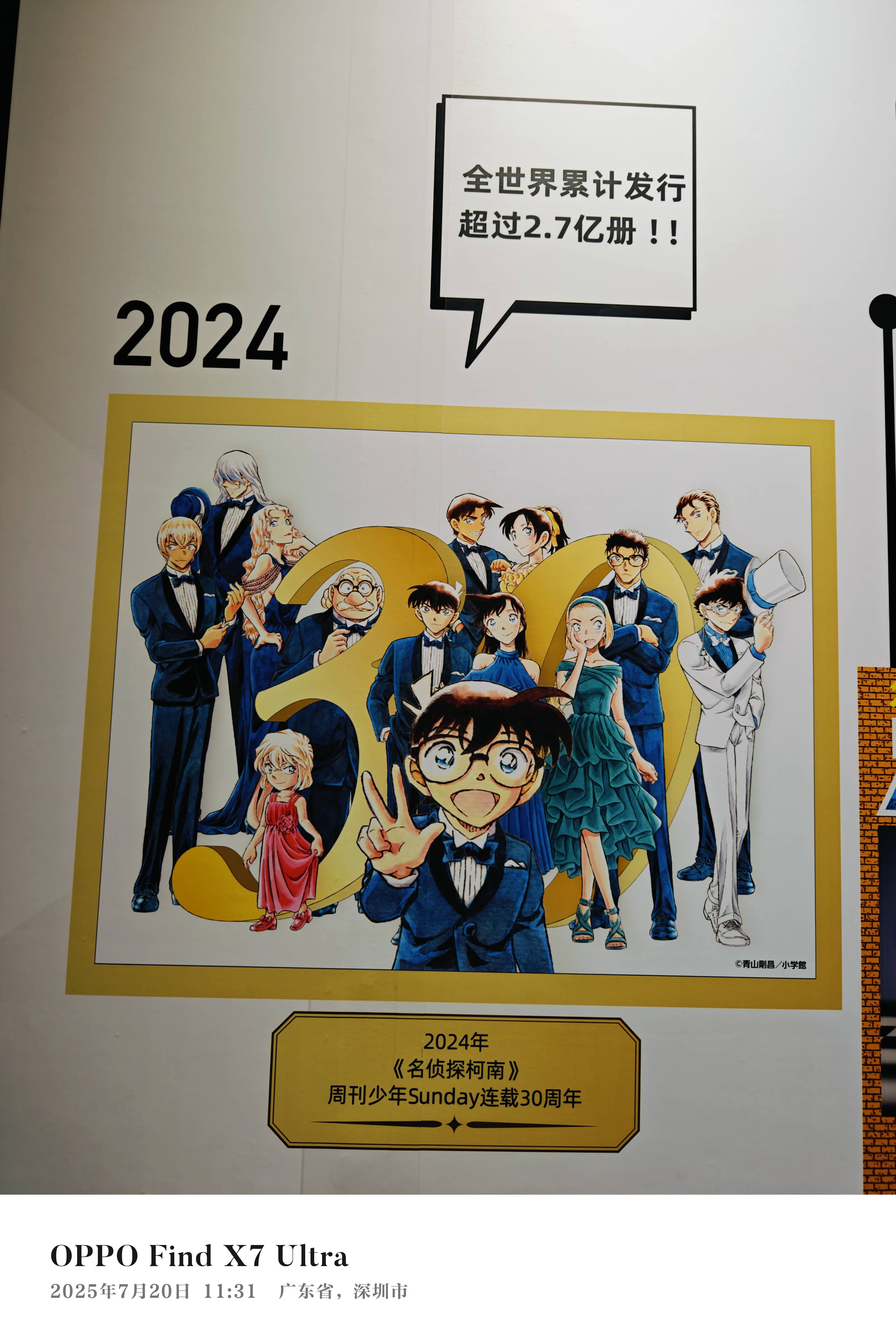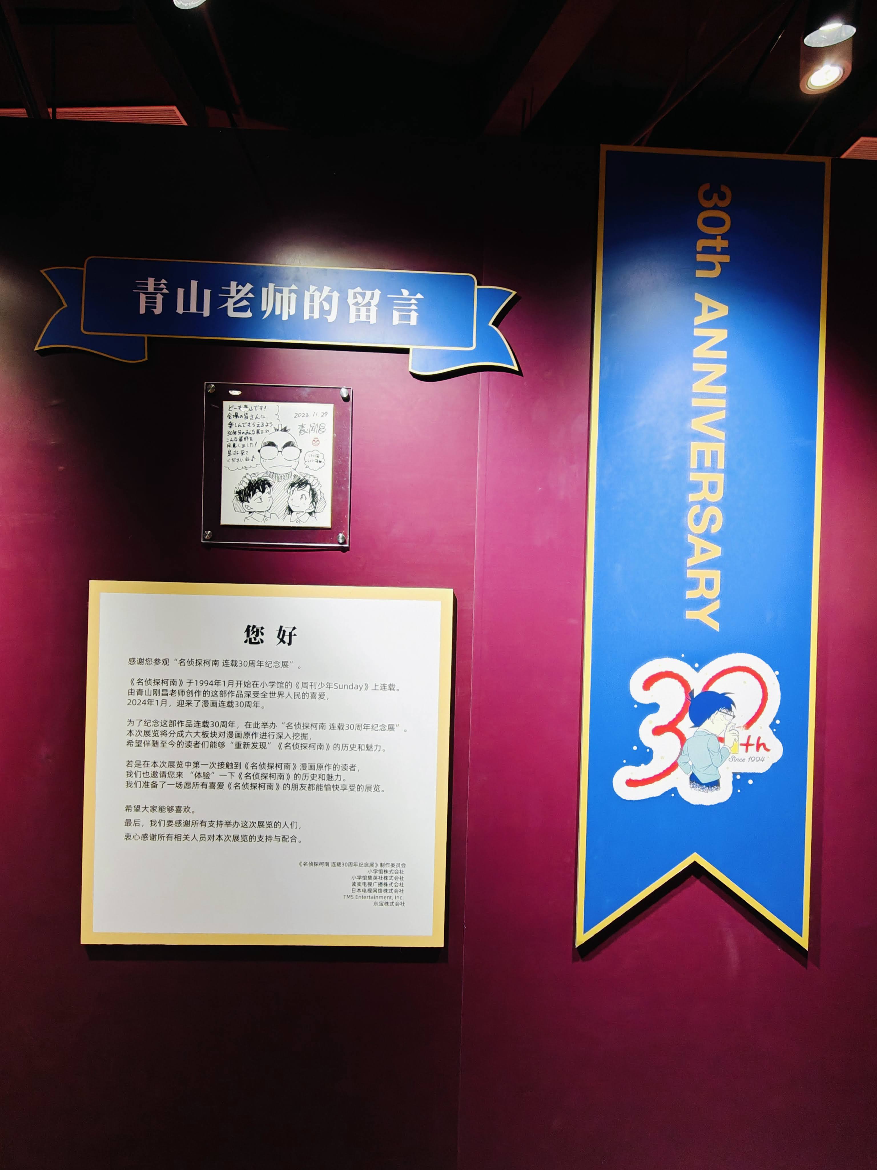 今年(2025)上半年开始在B站看《名侦探柯南》动画中配版,到暑假时已经从第一集看到了200多集,碰巧在网上看到名侦探柯南漫画的连载30周年深圳站就在这个暑假,而且是大陆的最后一站,如此难得的机会,我毫不犹豫就购票去看了。