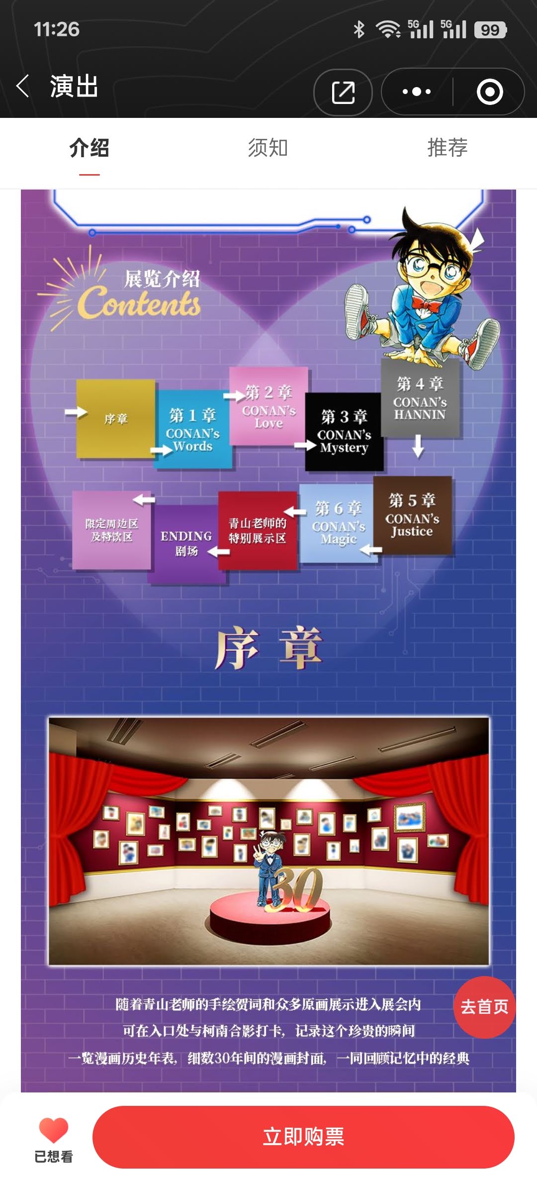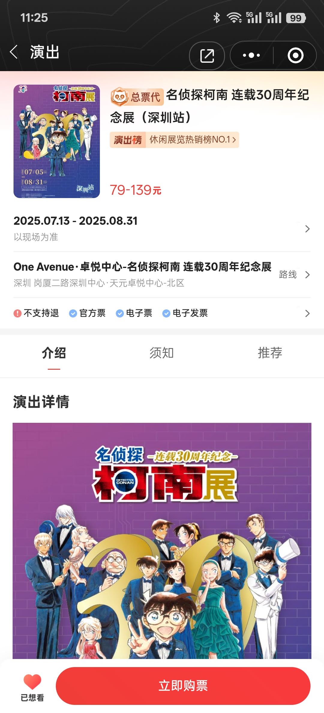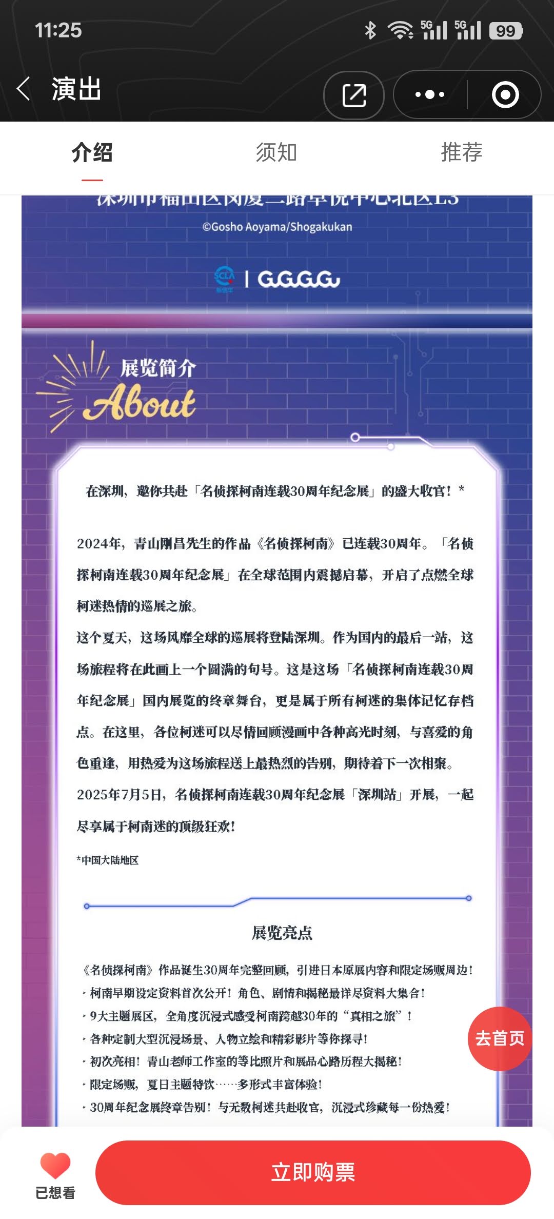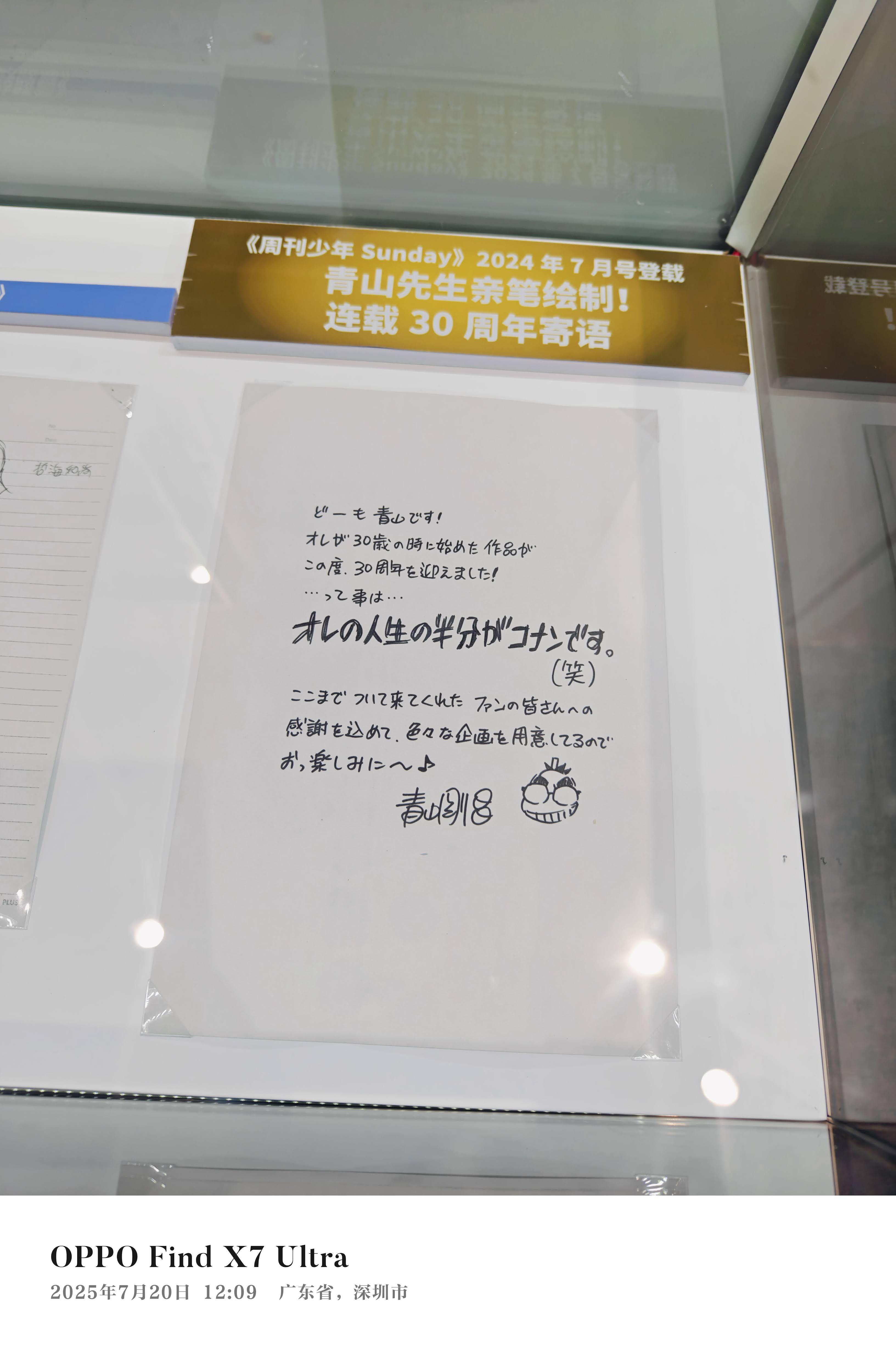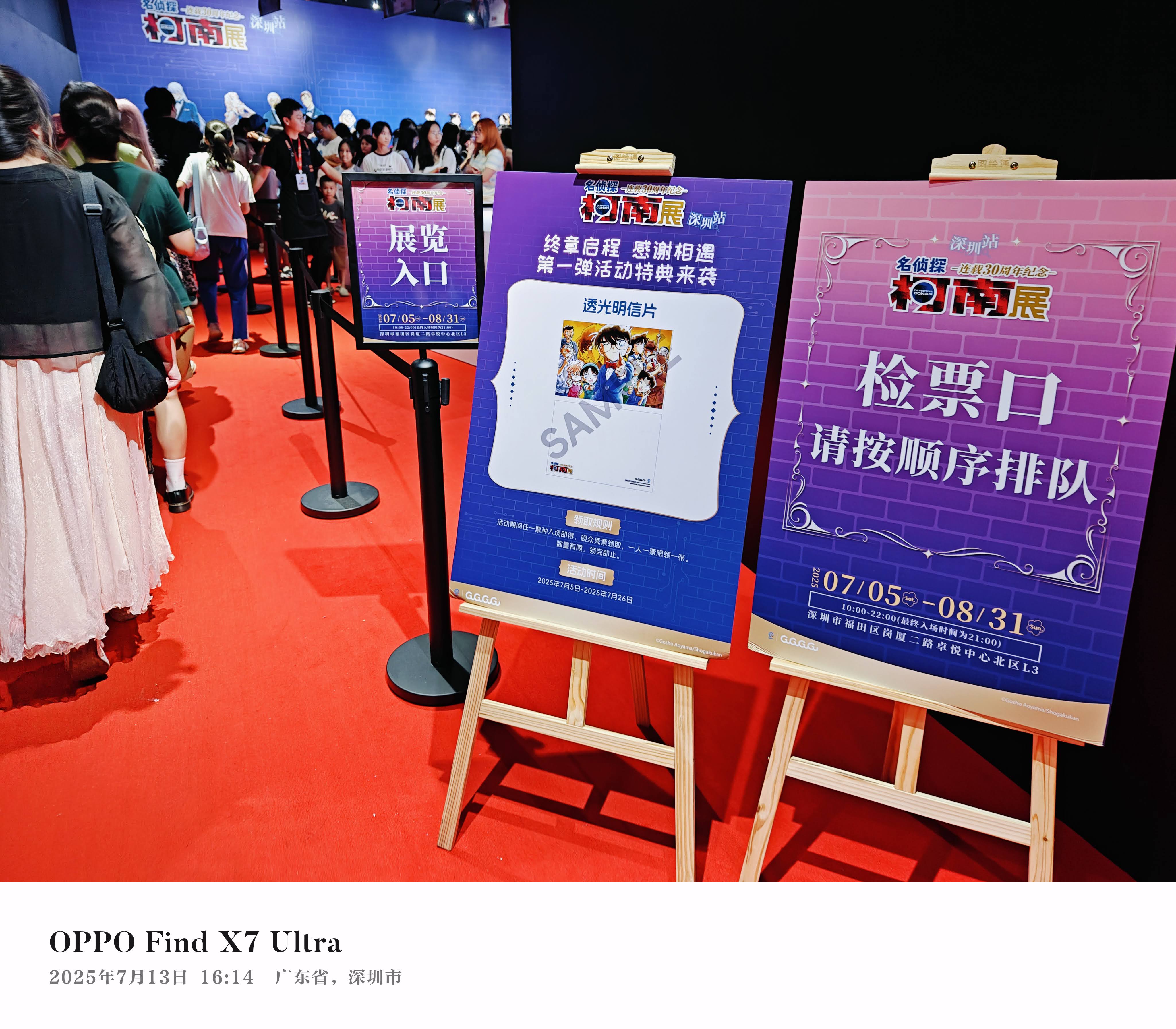 今年(2025)上半年开始在B站看《名侦探柯南》动画中配版,到暑假时已经从第一集看到了200多集,碰巧在网上看到名侦探柯南漫画的连载30周年深圳站就在这个暑假,而且是大陆的最后一站,如此难得的机会,我毫不犹豫就购票去看了。