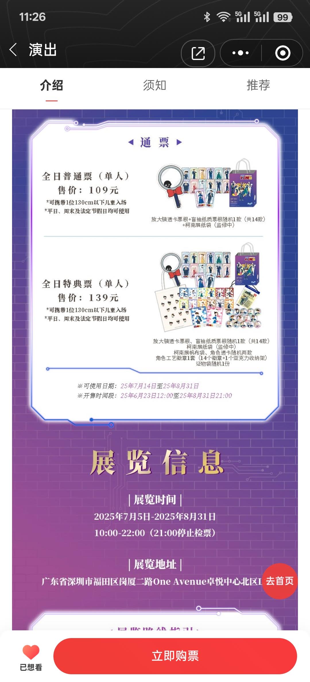 我看到的时候已经没有早鸟票,于是买了特典票(¥139,猫眼电子票),地点是福田区的One Avenue卓悦中心,但是第一次去时正好是早鸟场的最后一天,拍了半个多小时的对,结果在验票时才知道来早了,于是又过了一周才真正入场观展。