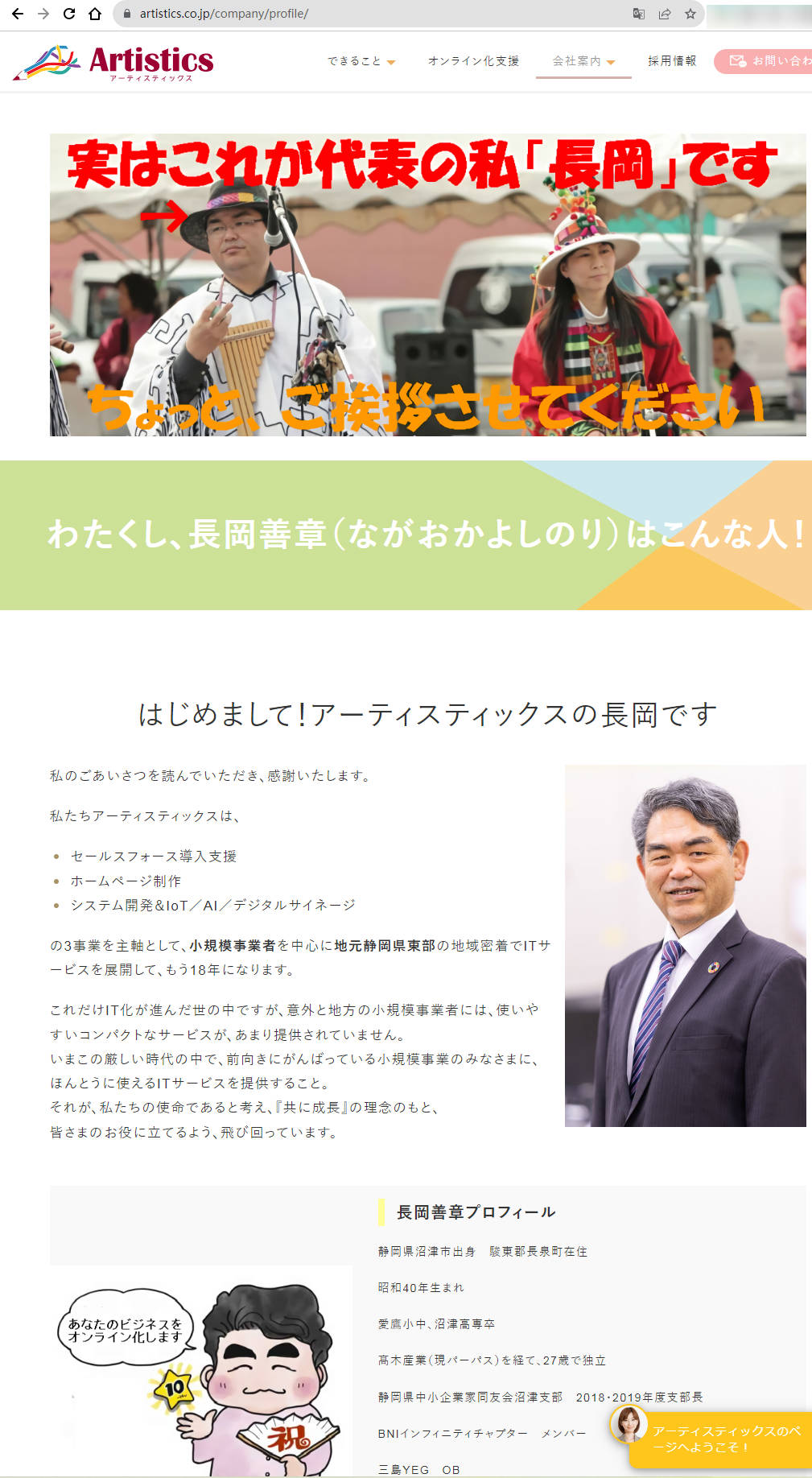 打开这家公司的官网(https://www.artistics.co.jp/),果然一个多彩的图文首页映入眼帘