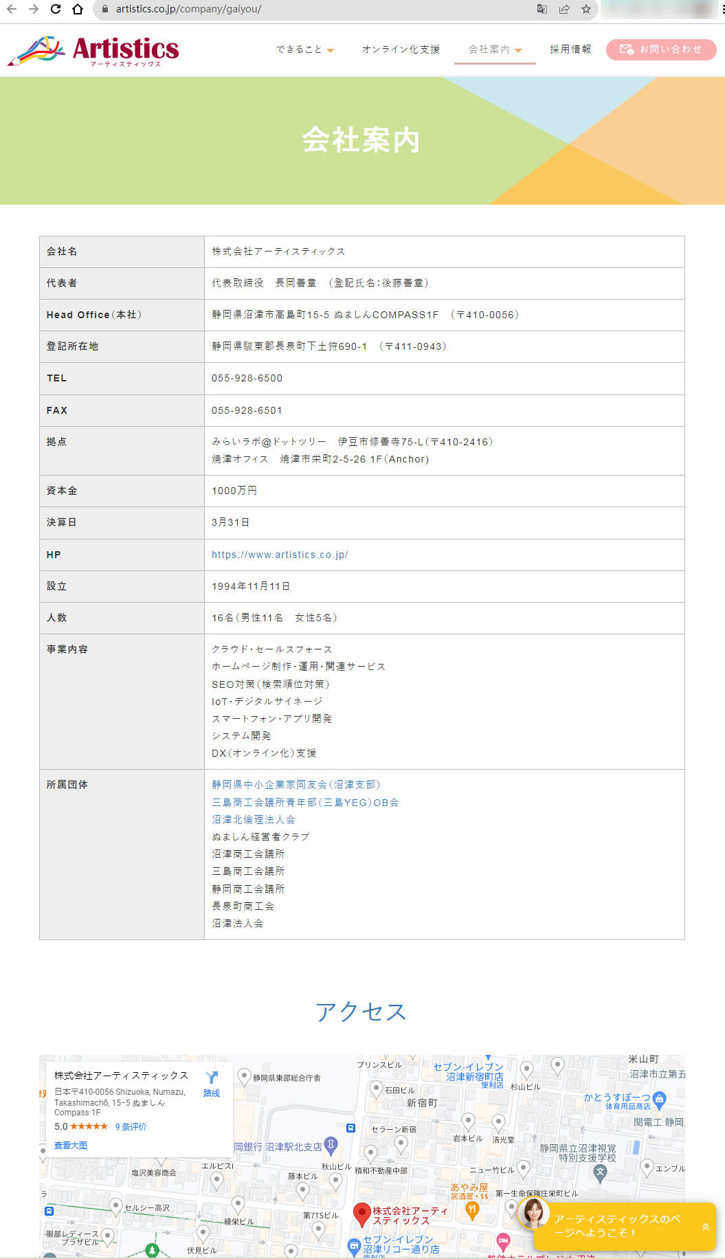 https://www.artistics.co.jp/company/profile/
