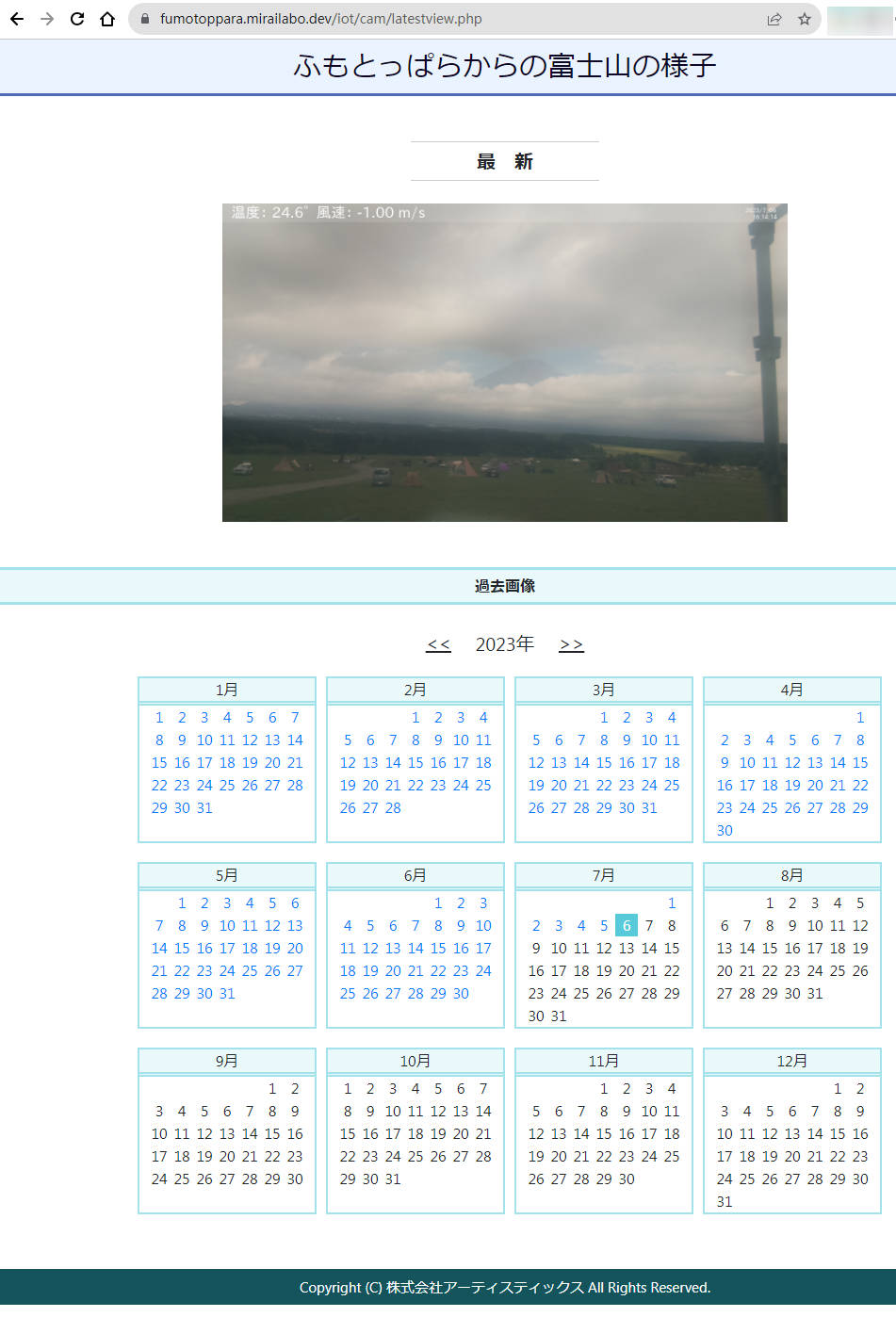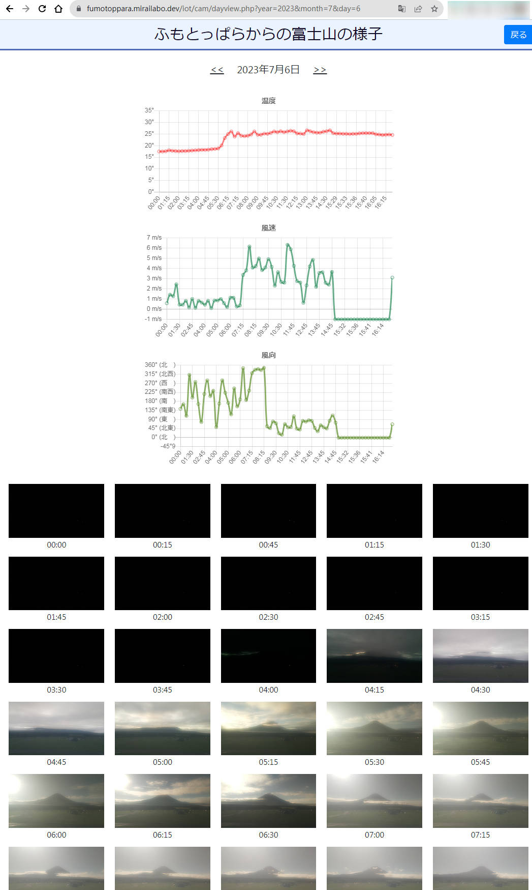 点击照片,打开了一个新的网址(https://fumotoppara.mirailabo.dev/iot/cam/latestview.php),有日历界面供选择日期: