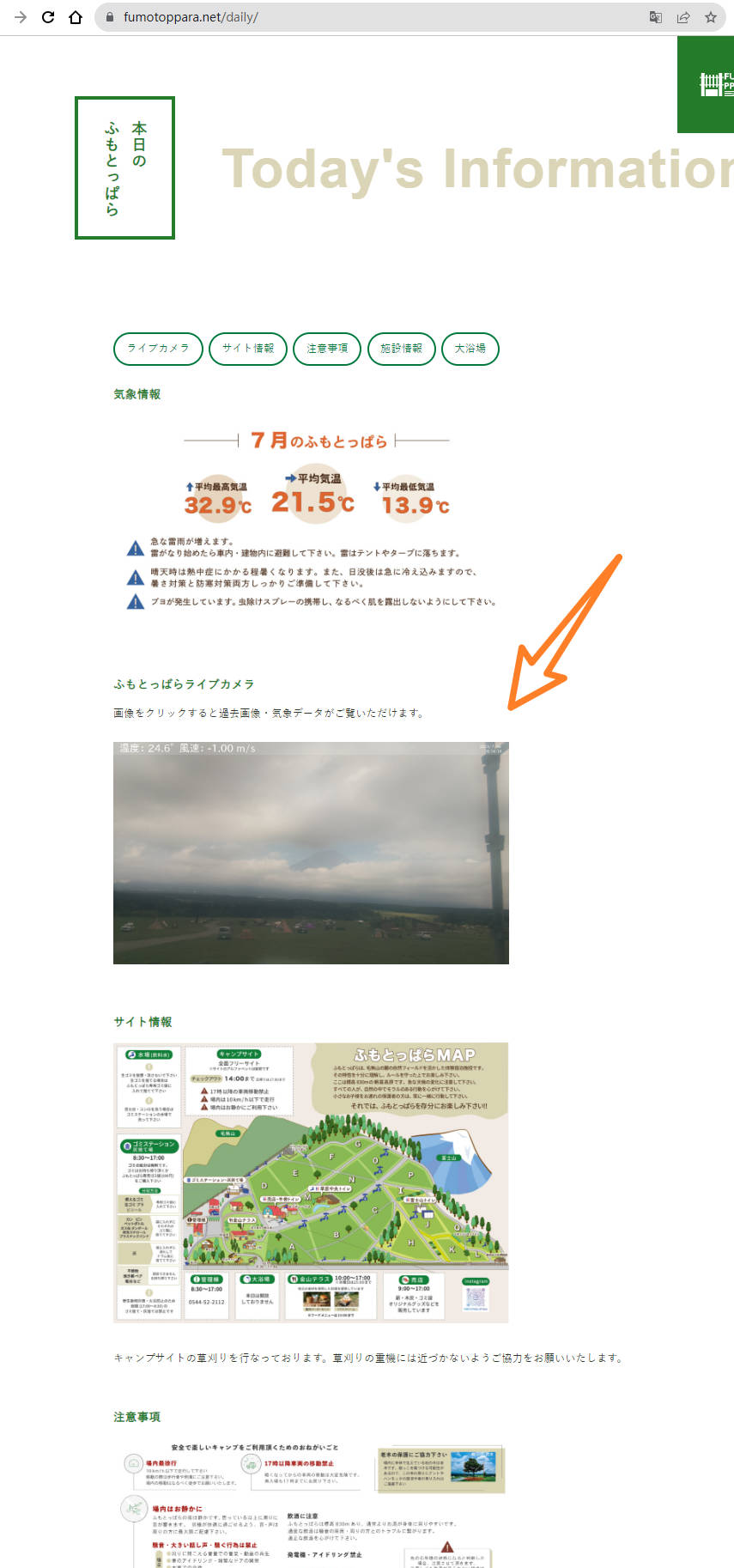打开关于今日的营地信息的页面(https://fumotoppara.net/en/daily/)