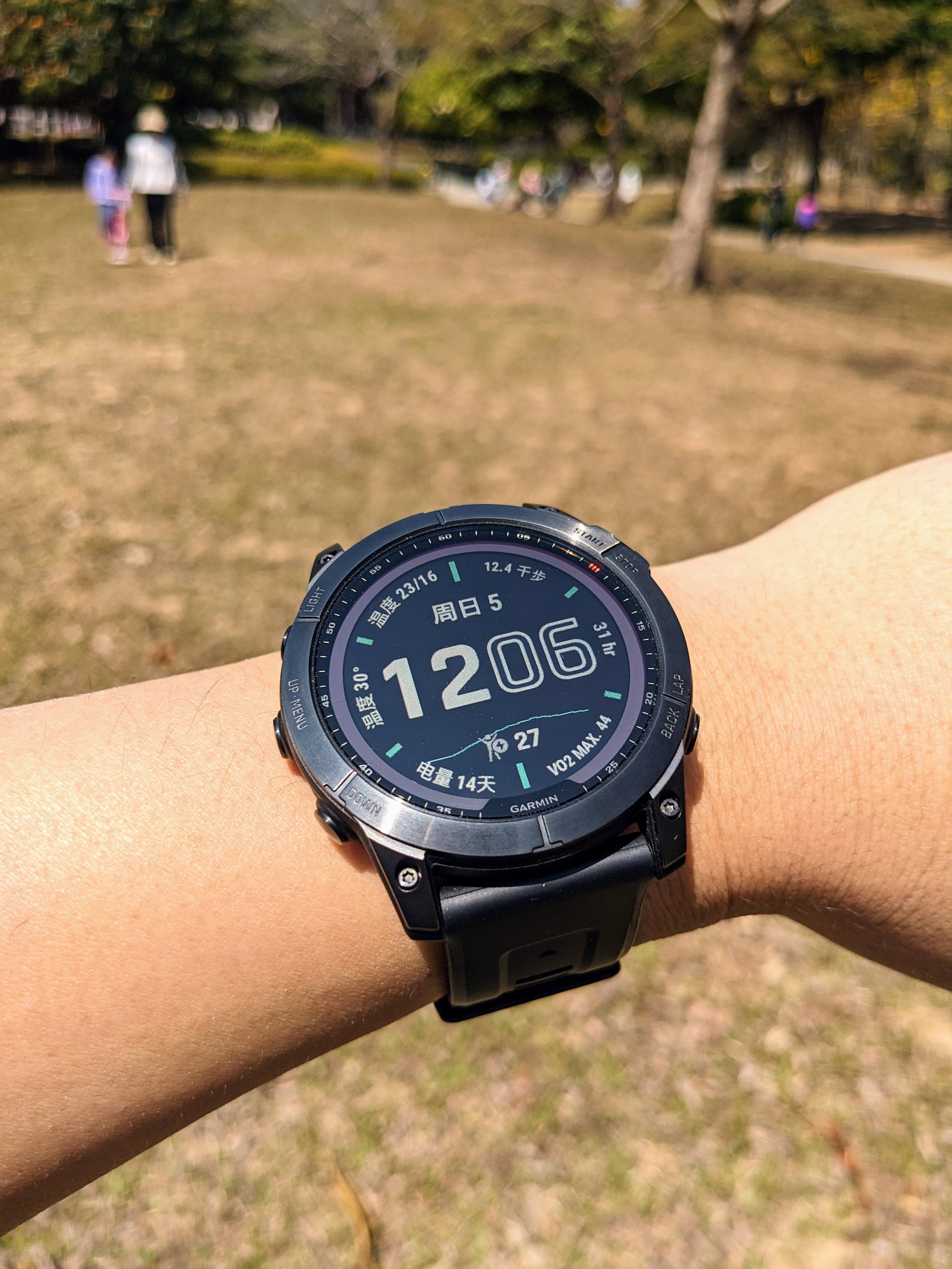 - fenix系列首次配备可触控的屏幕,交互更加方便(使用了将近3个月,锻炼运动时由于晃动以及手指汗水等因素,确实侧边物理按键更准确可靠,但日常生活中使用触屏则更直观省力,但由于手表屏幕面积有限,我个人其实无论锻炼还是日常都以按键操作为主)