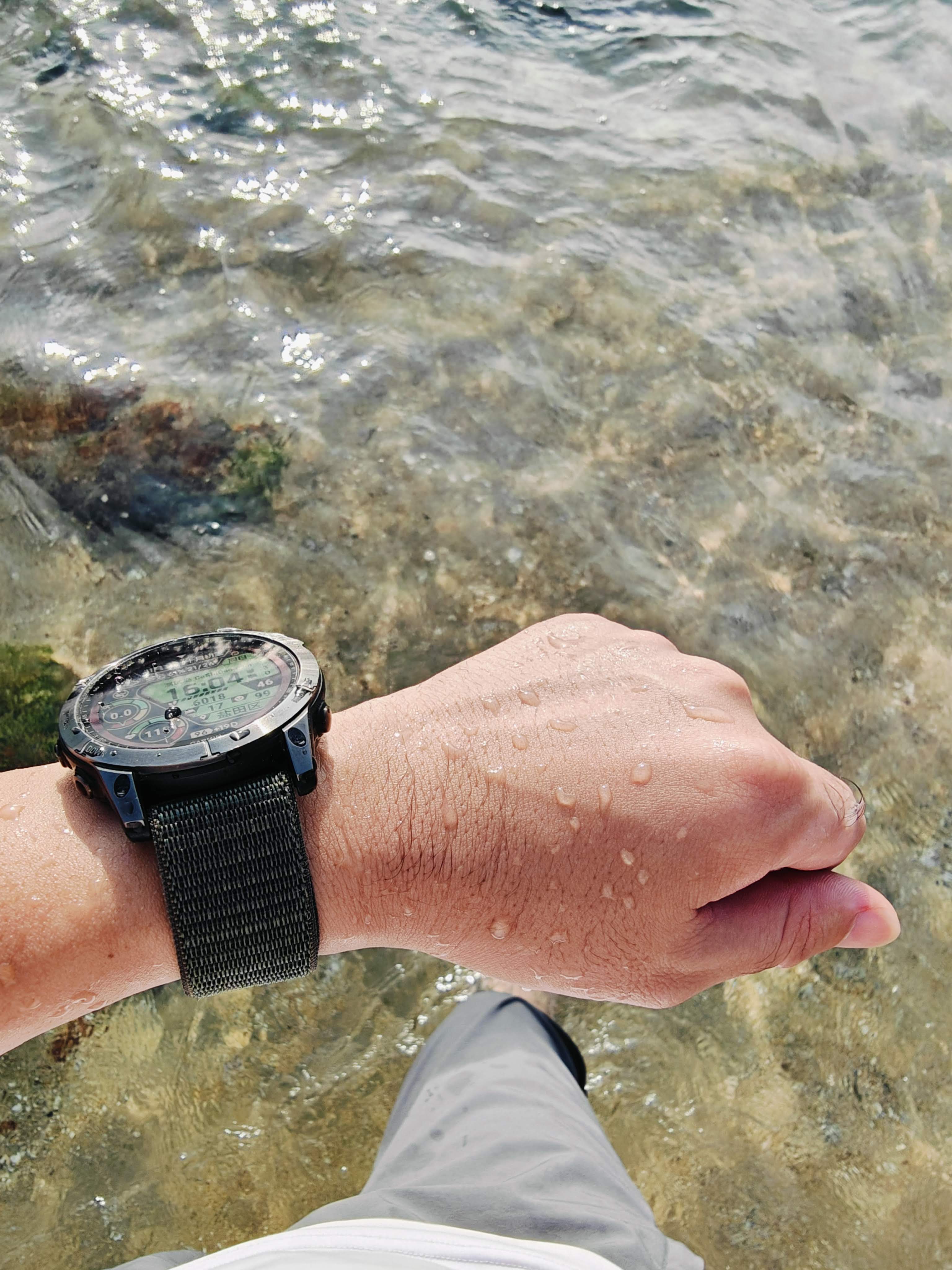 - 号称军规级别坚固耐用可以在大部分户外严酷环境使用,10 ATM级别防水(也就是可以承受最深100米,但不能水下操作按钮),抗冲击,表盘使用抗刮划的康宁大猩猩玻璃镜面