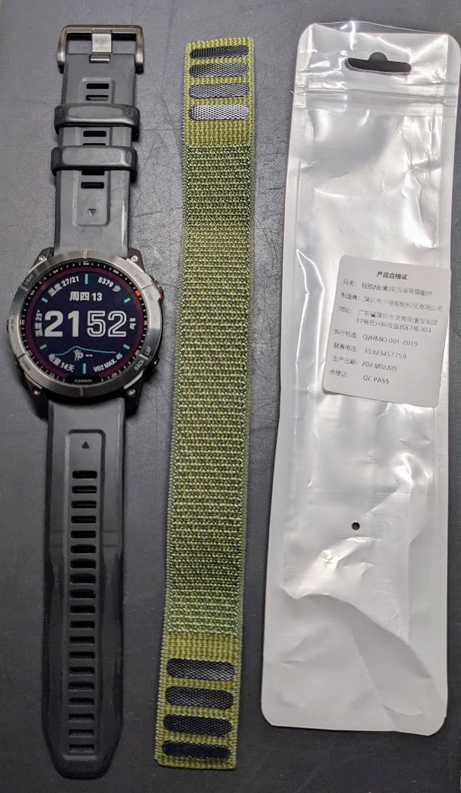 - 标配的是硅胶表带,虽然扣眼密集比较好依腕调节,但使用约半个月还是遇到了轻度的皮肤过敏情况,每次运动完或出汗后,最好及时清洁并干燥表带再佩戴,建议考虑购买尼龙材质的表带作为替换,在拼多多花28软妹币包邮入了一条第三方的尼龙编织魔术贴表带,透气性、弹性和贴合度都不错