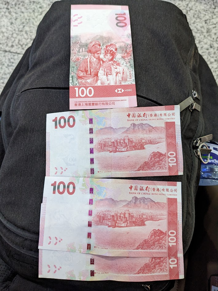于是先去高铁站内的一个货币兑换店,用380元人民币兑换了400元港币,发币银行是中国银行香港公司和汇丰银行