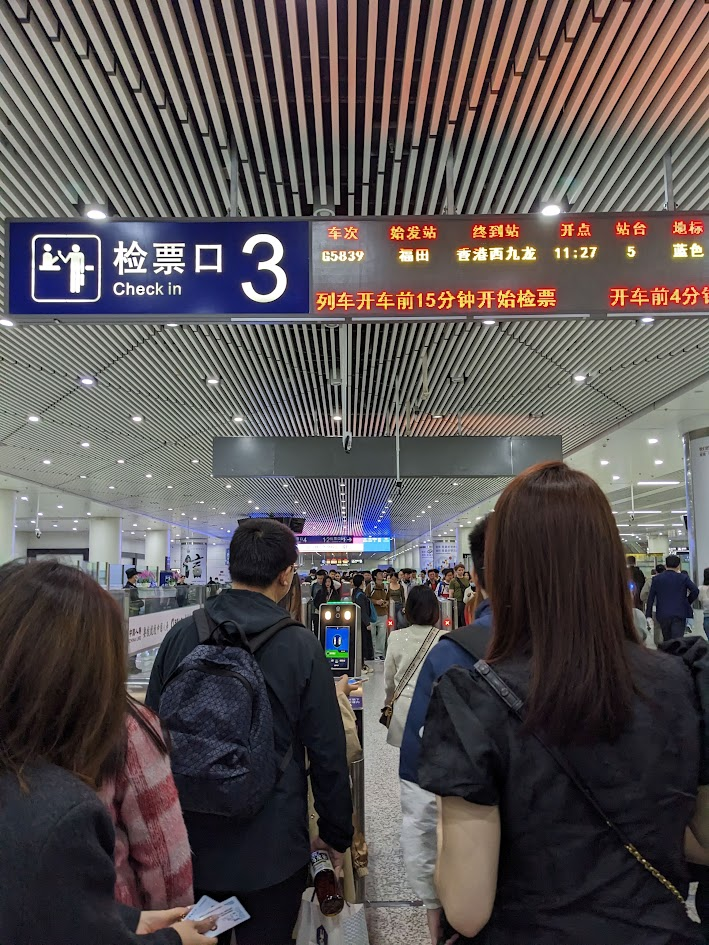 - 11:15 深圳【福田】高铁站凭身份证或者12306的二维码检票进站乘车,没有海关流程