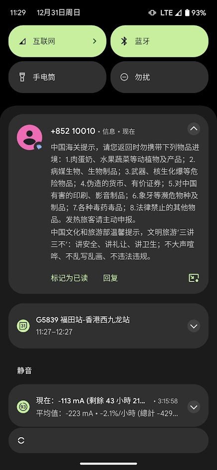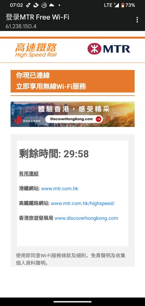 提醒下如果是使用了水货带运营商锁的手机,到香港了连接WiFi最好还是设为按流量计费,这不,我的Pixel 7 Pro在深圳可以随意连WiFi,一到香港连接MTR的WiFi就被识别了,具体设置办法详见这篇博文……