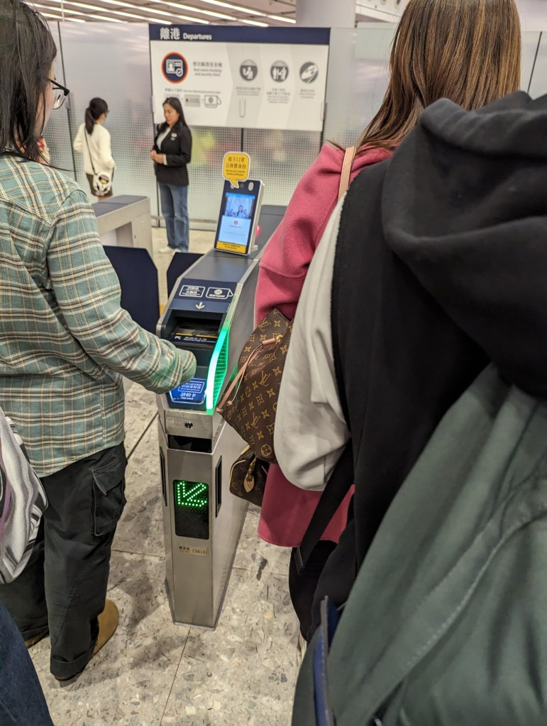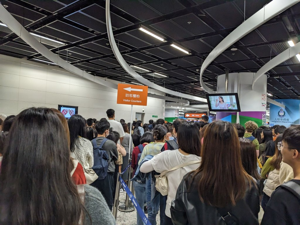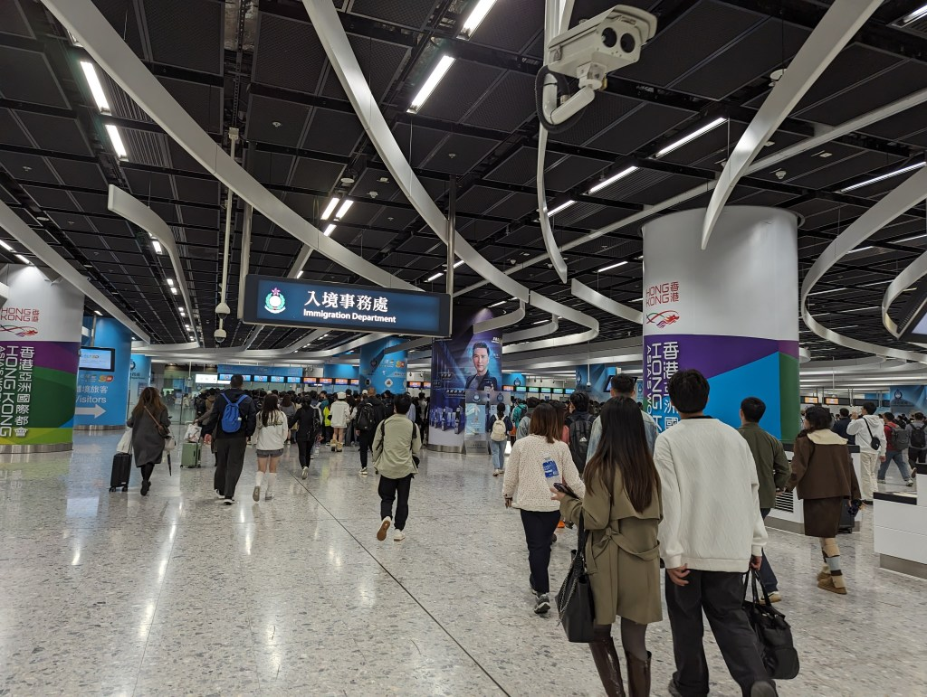 - 12:22 在【香港入境处】用港澳通行证排队完成了检验入关,走e通道比较快,关员会核对照片和本人