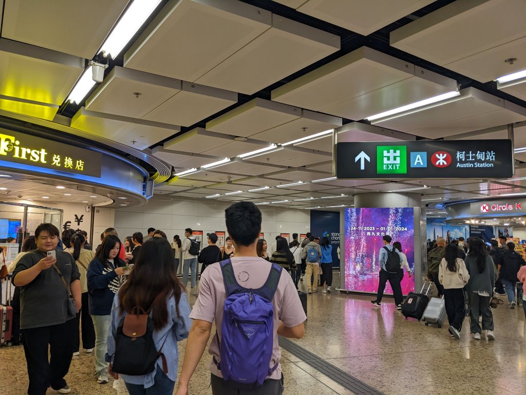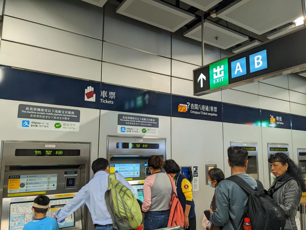 - 12:25 出关就进入港铁【柯士甸】站了,可以在此给八达通卡充值,支持微信和支付宝付款,然后坐地铁去各处,或者出地铁站去别地方