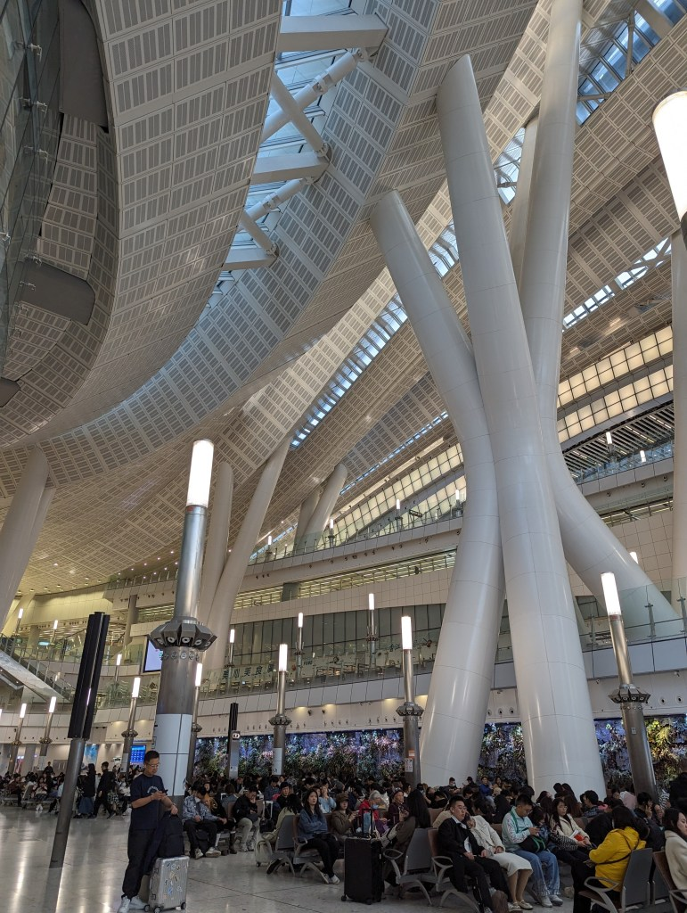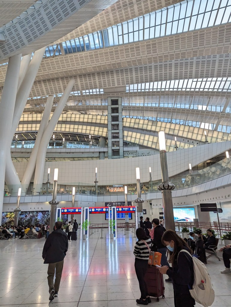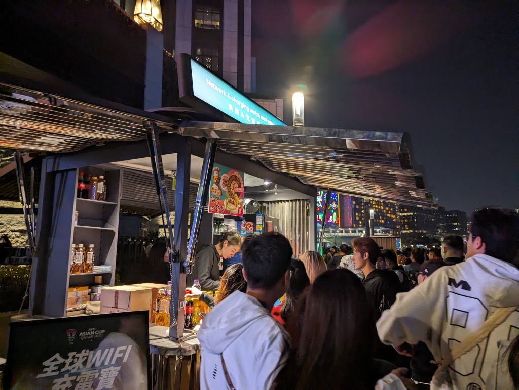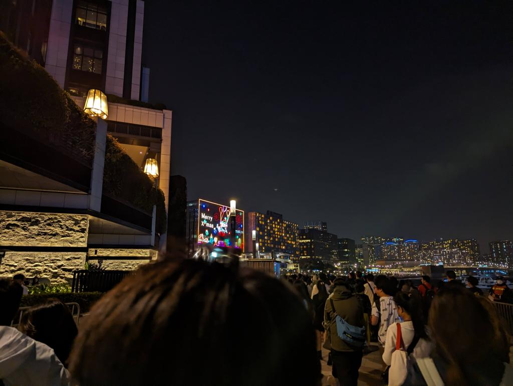 烟火表演结束后,按之前的计划是去附近的两个24小时营业的麦当劳选一个点一些夜宵将就过夜,因为我们确定行程太迟了来不及订酒店住宿,但是满大街都是游客,虽然有不少便利店和一些餐厅提供餐食,但显然很多很多人也和我想的一样,并且还比我们早到了餐厅,早就人满为患了……最终是在任天堂快闪店所在的K11商场中庭休息区休息了两个小时,5点就去高铁站,然后改签提早坐高铁回的深圳
