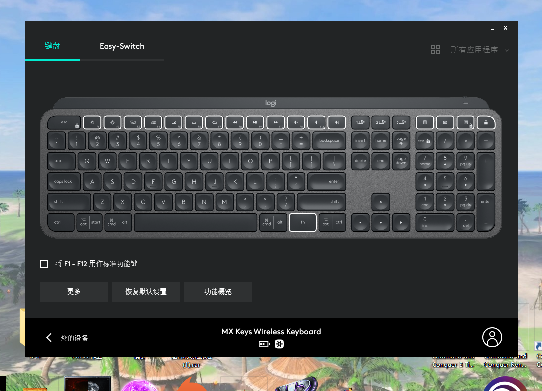 - 键盘按键自定义要生效,必须设备安装了Logitech Options并在软件里有设置或者登录同罗技账号同步。实测:我的Windows电脑安装了Logitech Options并把【音量增大】设为【无】(也就是按了没有任何反应),但切换连接到我的坚果R2手机后,【音量增大】这个按键依旧是默认的音量加大,作为将近500人民币的一块高端键盘,居然不能把按键配置保存到键盘本身,实在遗憾,而罗技自家不到一百人民币的G102鼠标都有板载内存从而插到其他设备也能用。
