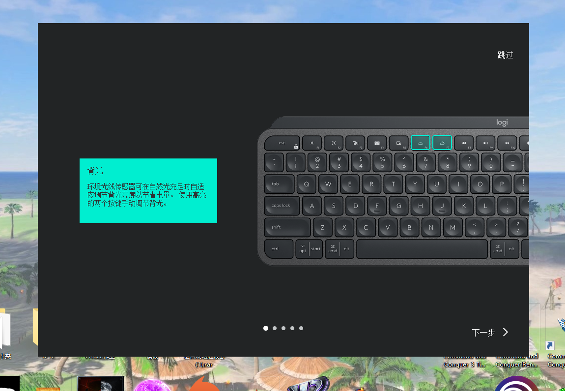- 褒贬不一的功能键:键盘从F1到F12是默认结合了一些快速设置功能,依次是屏幕亮度、显示所有窗口的缩略图、最小化(和恢复)所有窗口、键盘背光以及多媒体前进后退暂停播放、静音、调节音量大小,此外还多出了一个单独的音量增加键,对于很少使用系统或软件中的F1~F12功能快捷键的人,这个设置无疑是充分利用了这些按键,减少了键盘体积,不过对于我这样经常要用到F2(重命名)、F11(全屏显示)、F12(浏览器显示网页源代码)的电商运营,这种设置就显得不合理了,还不如增加一排独立的调节按键。右上角有个锁屏键,相当于Win+L的组合键,这个按键比较实用,所幸这些带额外功能的按键可以在Logitech Options软件里自定义。