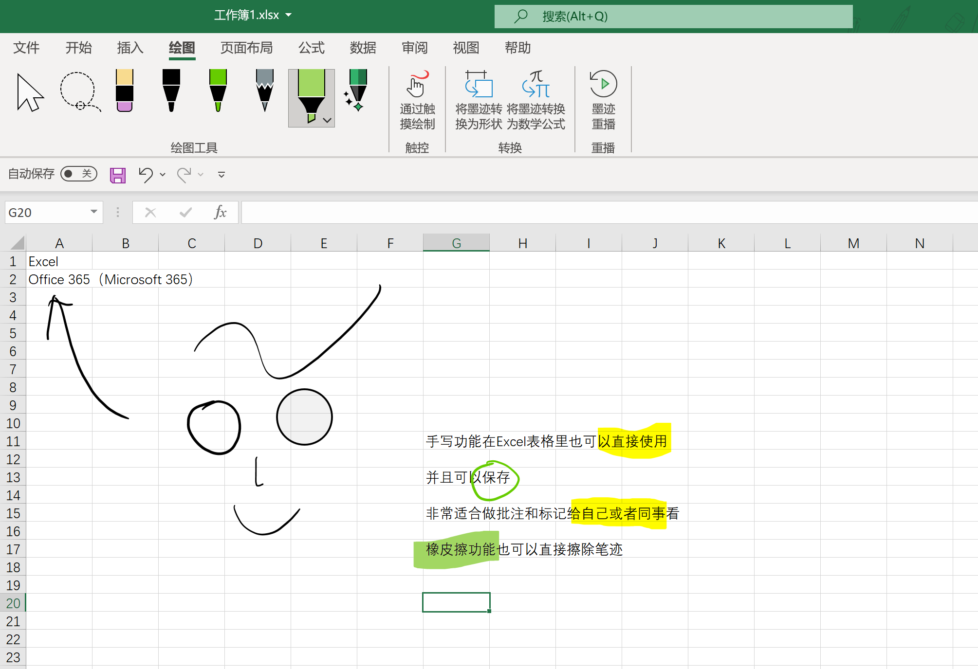 9. 在Excel表格里也可以直接使用书写,非常适合自己做备注或批注然后给同事看