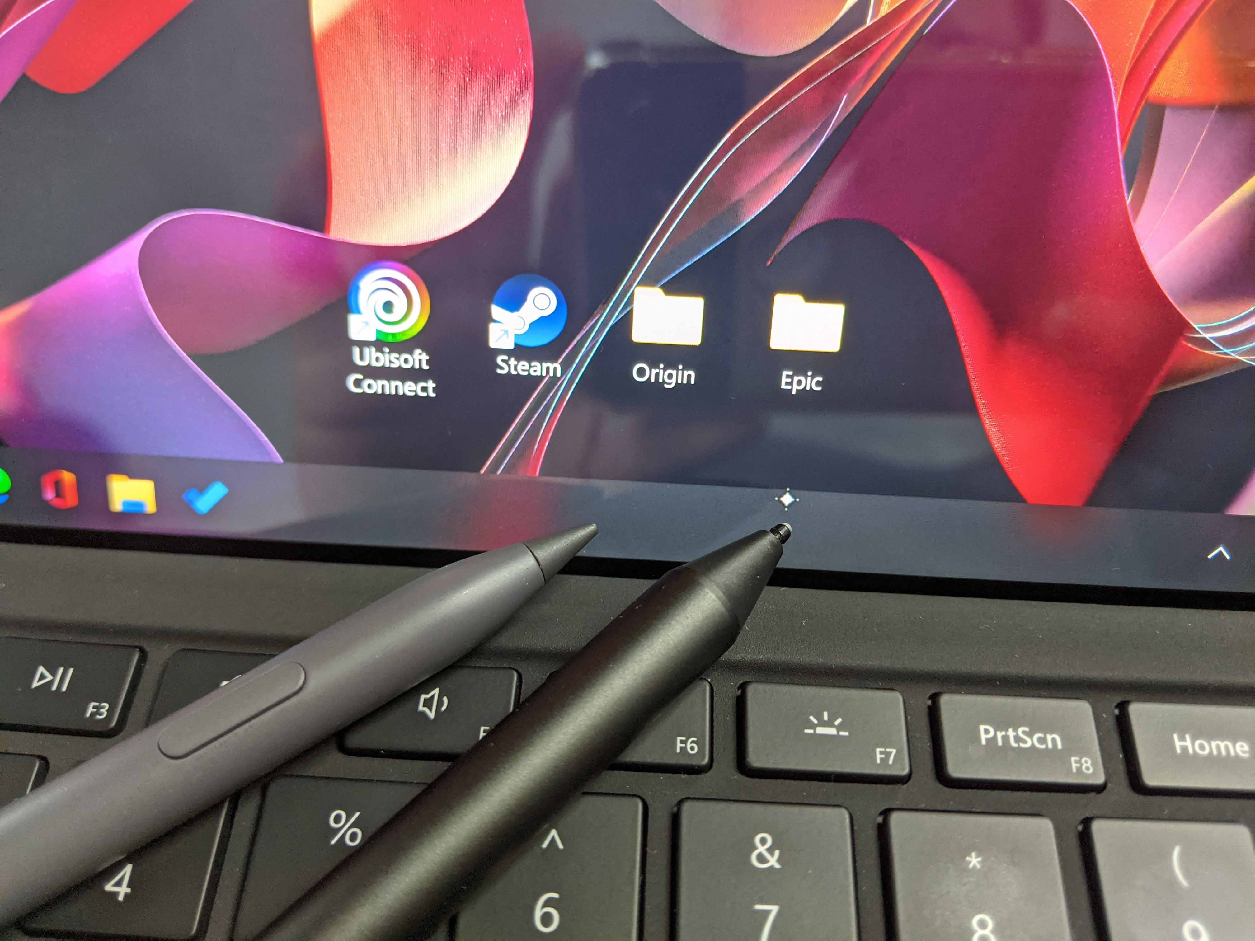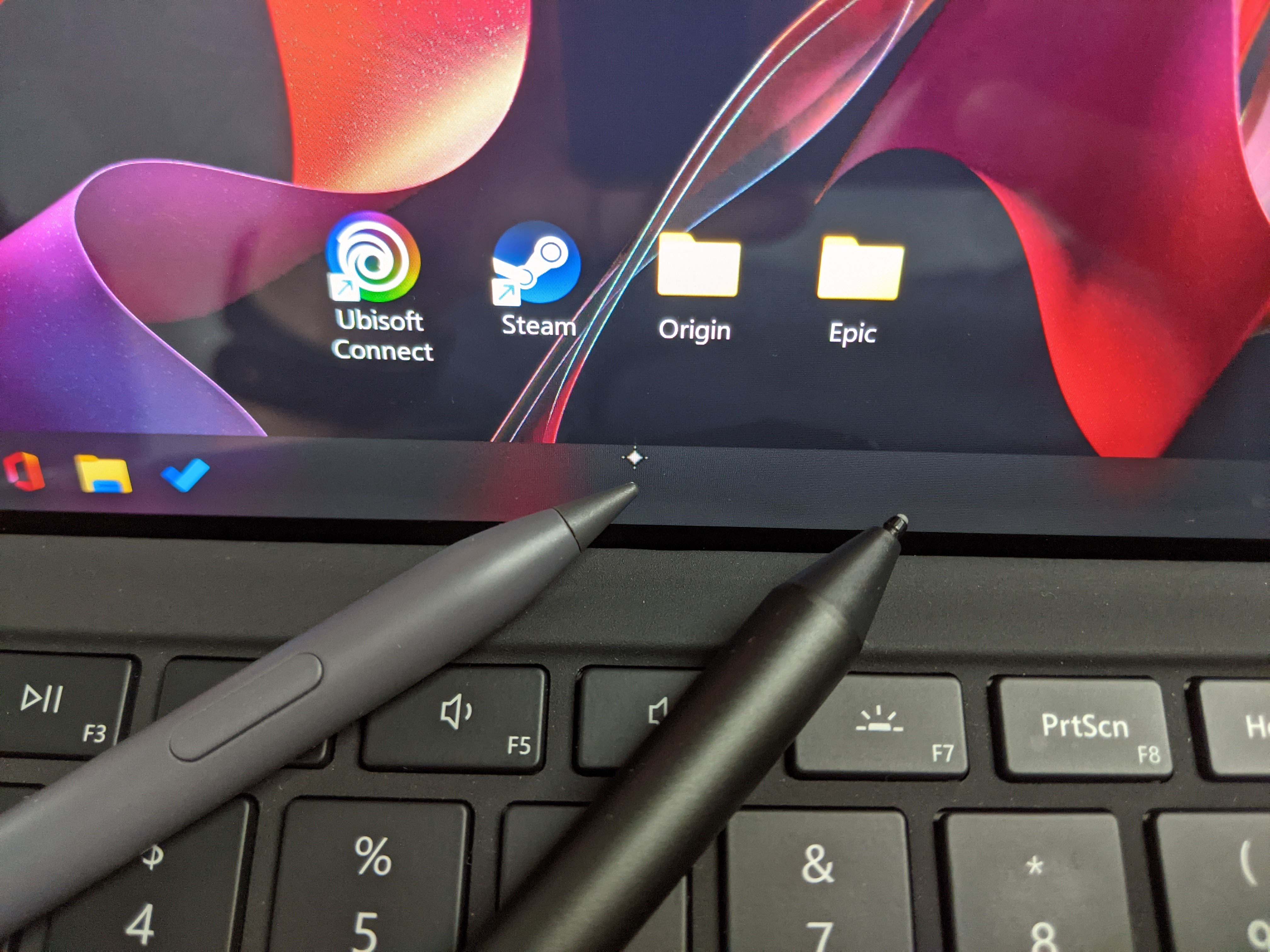 1. 我的Surface Pro 7的键盘盖本身不像Pro 8的键盘盖那样有一个收纳兼无线充电的槽,因此无法收纳它,临时停靠可以吸附在侧面,但如果要收起来放进包里,或者其他可能蹭到边缘的使用场景下,可能就会把笔不经意间弄丢,不过目前放在我的地平线8号背包的笔记本隔层里吸笔的那侧向上收纳,每天两次放入取出也还好,只要放入和取出时稍微留意就没什么问题,因为它的磁吸力真的有点强