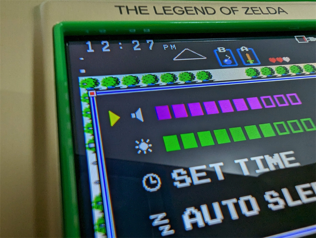 - 可以调整音量和屏幕亮度,除了游戏有声音,时钟模式下也会有每秒发出滴的一声,提醒你时间流逝