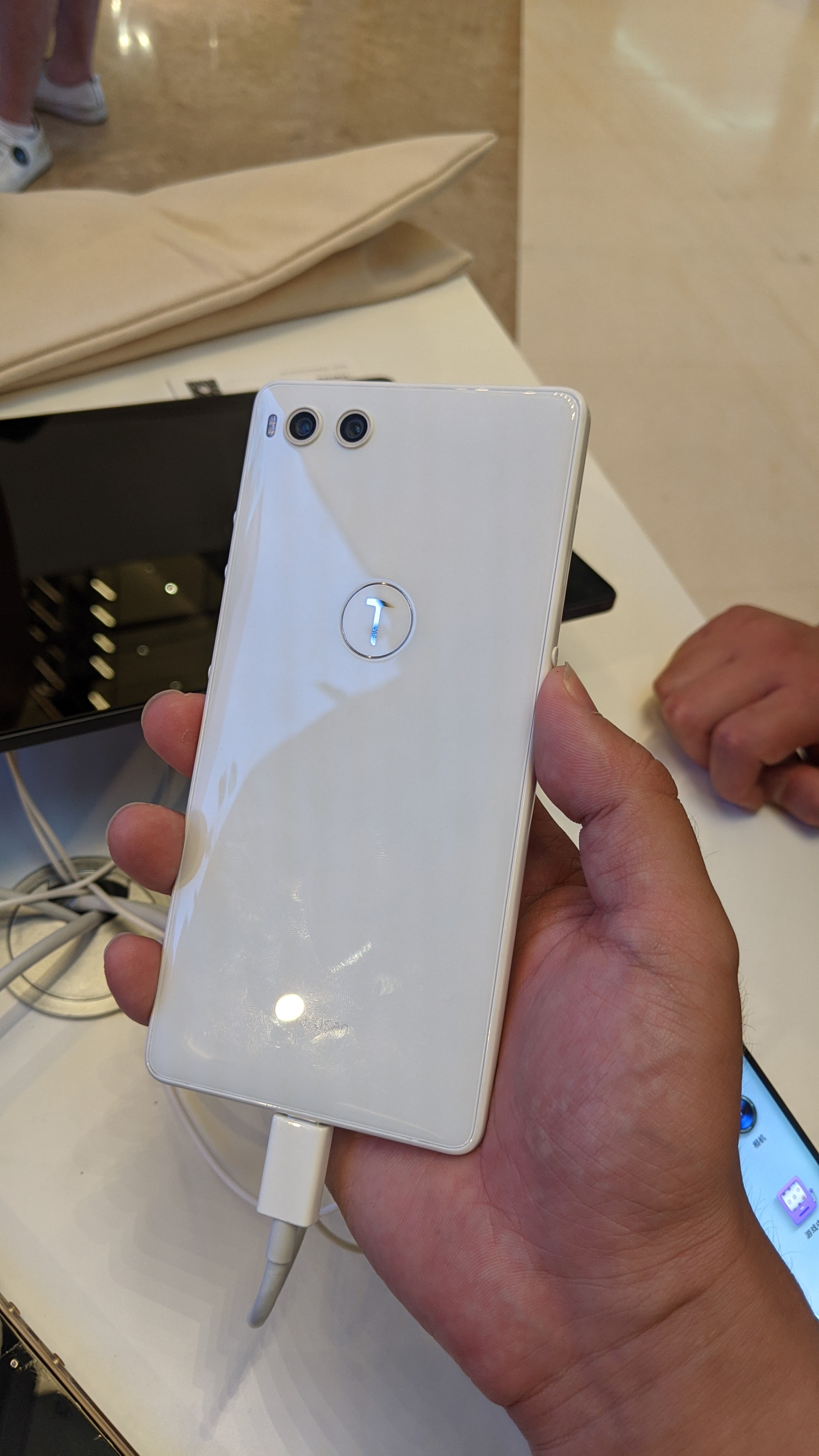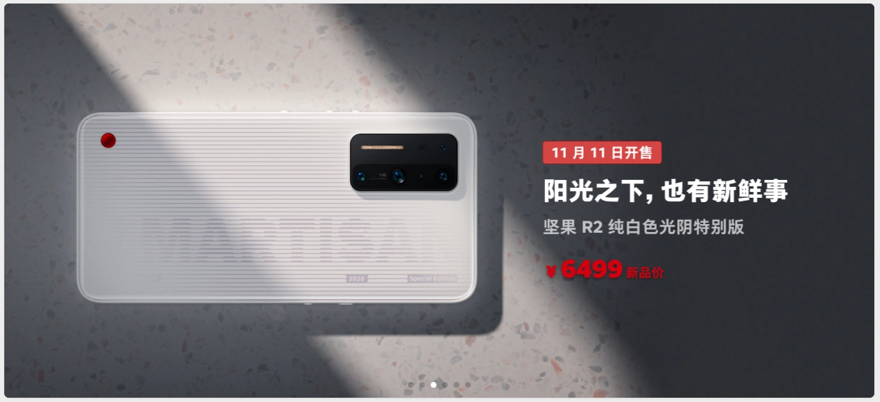 2. R2的纯白色【光阴特别版 】——纯白背板和边框、背部随光线照射而显露隐隐的SMARTISAN字样的限量版。发布会说由于工艺难度和良品率而只制造了2千台。我的看法是,这又是致敬锤子系的情怀的又一举动,没有实际用途,但这些在别的用户看来【并没有什么X用】的东西,却正是锤友们津津乐道的心头好,这些东西,对锤粉来说就像露珠中颤动的晨光一样晶莹动人 。