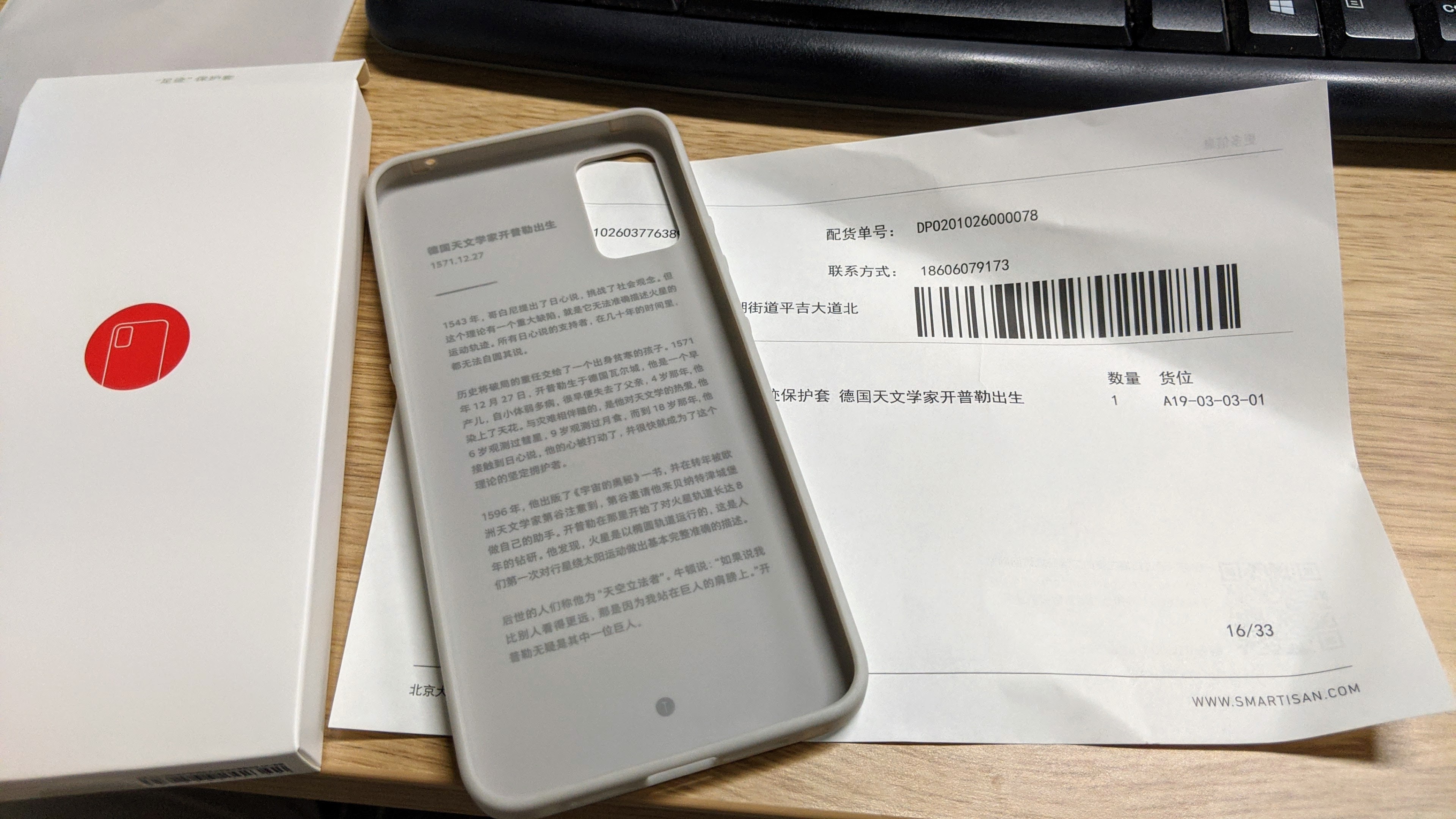 坚果手机Pro3的官方足迹系列保护壳之开普勒,内侧的文字故事