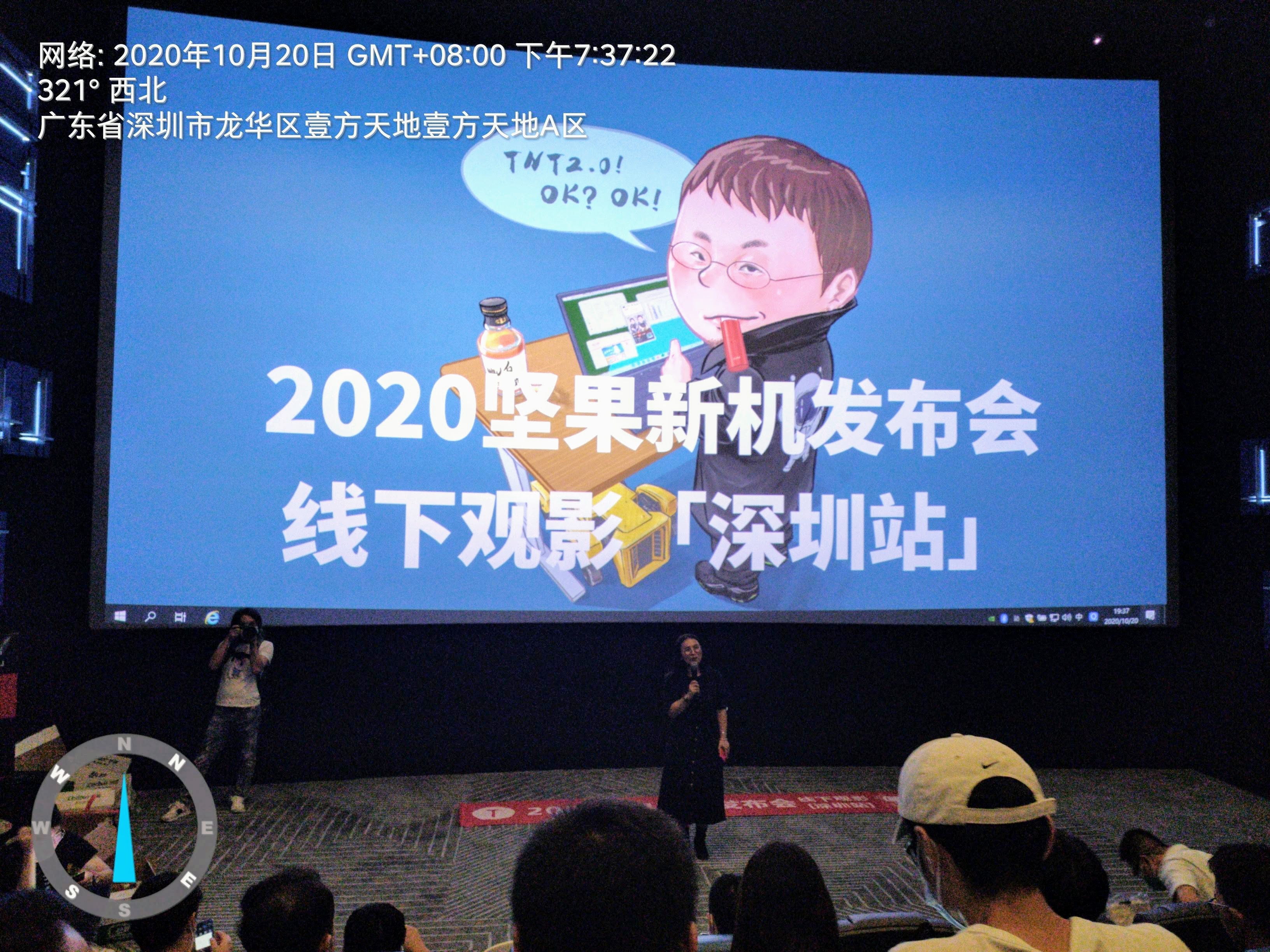 非官方的深圳锤友线下观影活动(【趣装备 &方小白 】热心主办,得到了官方的礼品支持),观影的内容就是当晚坚果手机的新品发布会直播,这是锤子科技把(坚果)手机团队出售给字节跳动后,继2019年秋季发布坚果Pro3手机后的第二场发布会,本次的产品及其价格一经发布,在网上和弹幕就刮起了嘲讽和诅咒的台风,而锤粉似乎就是处在台风眼边缘、跟随台风眼移动的群体,我好像就是这个群体里的一份子,向台风眼中心望去,我心宁静,转身背后,就是狂风暴雨,取决于往哪里看,而我,两边都看,甚至也看看别的台风眼 。