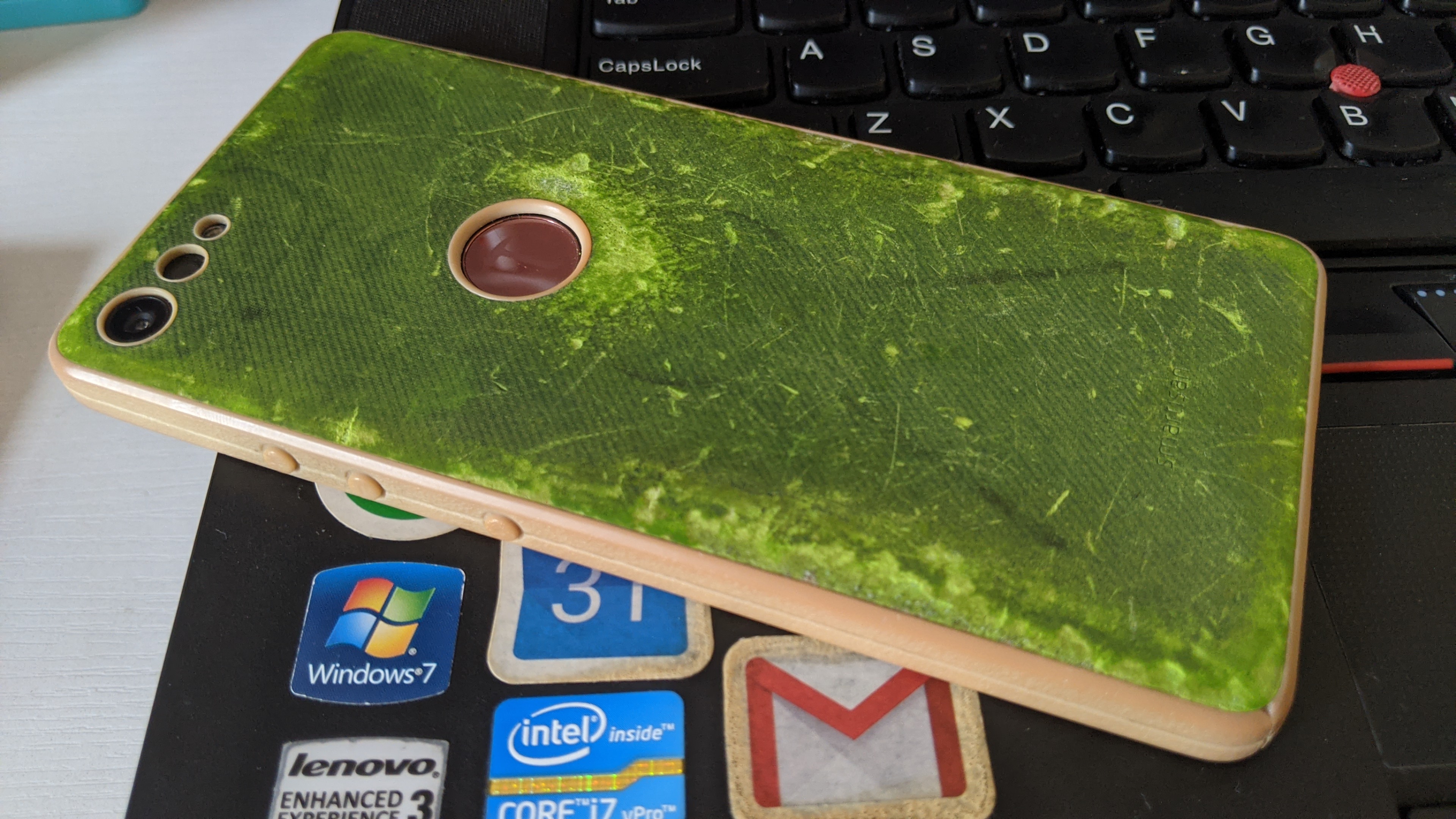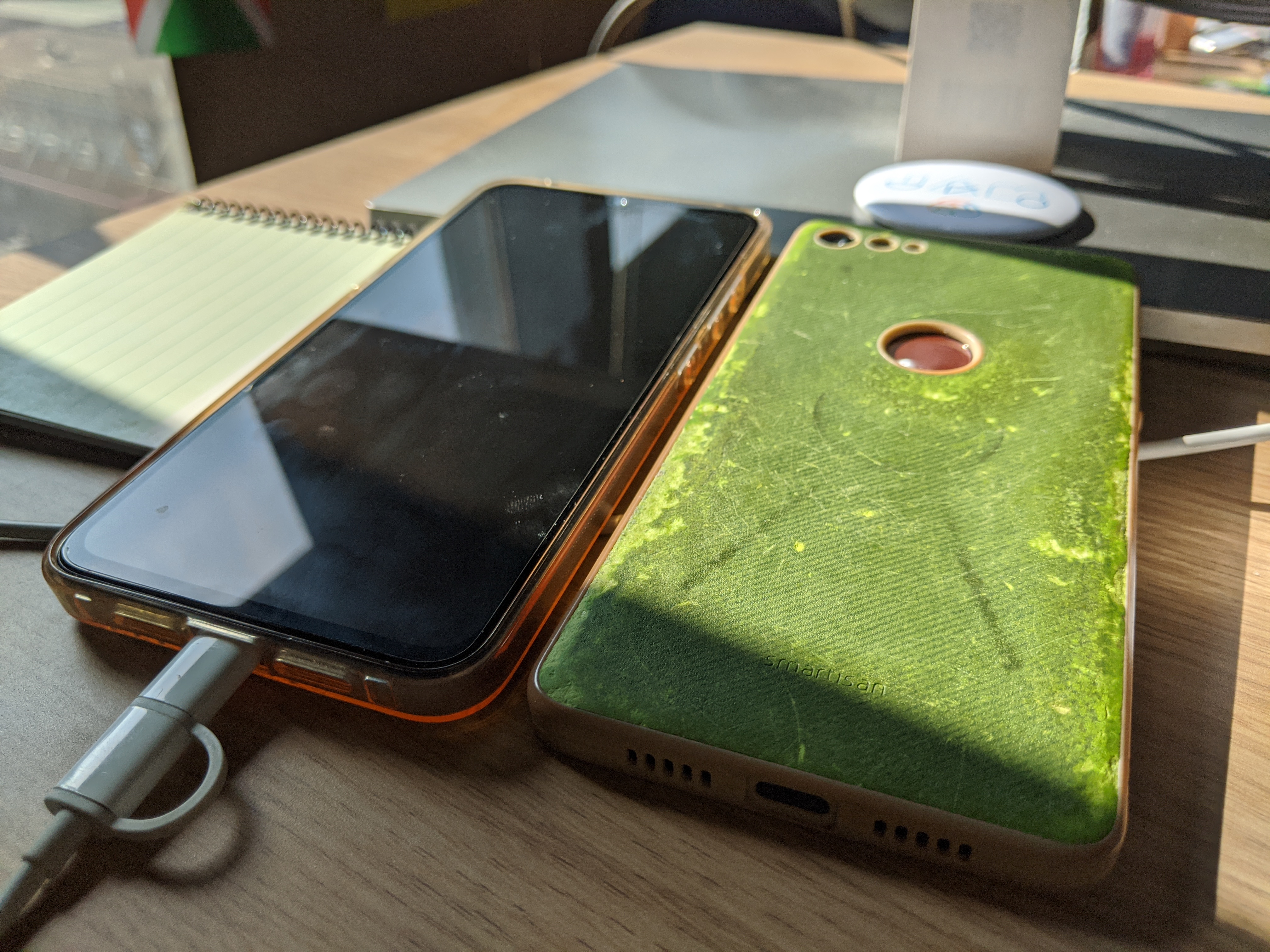 坚果Pro2的官方文青壳,用了两个月后开始有岁月的痕迹。。