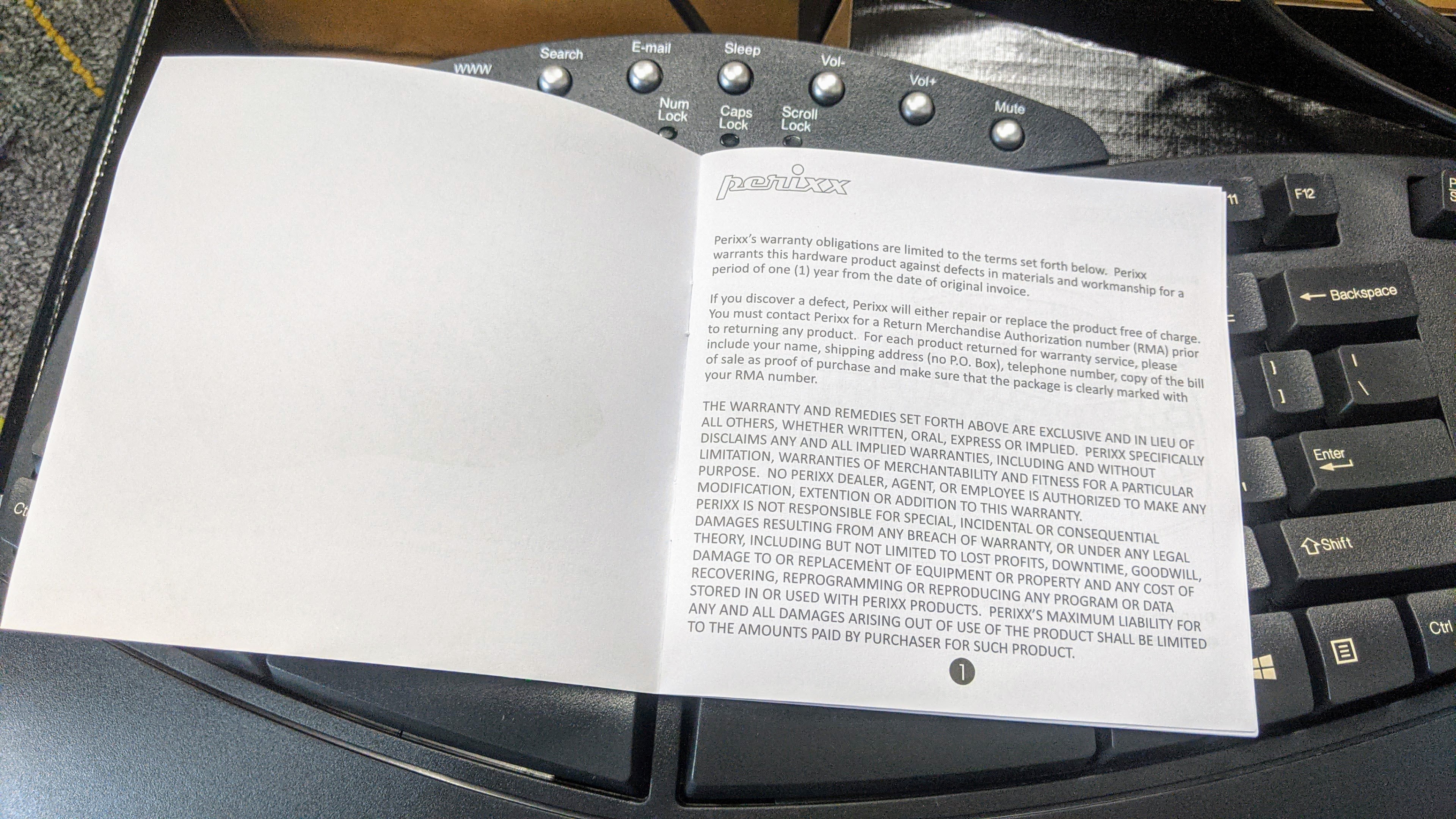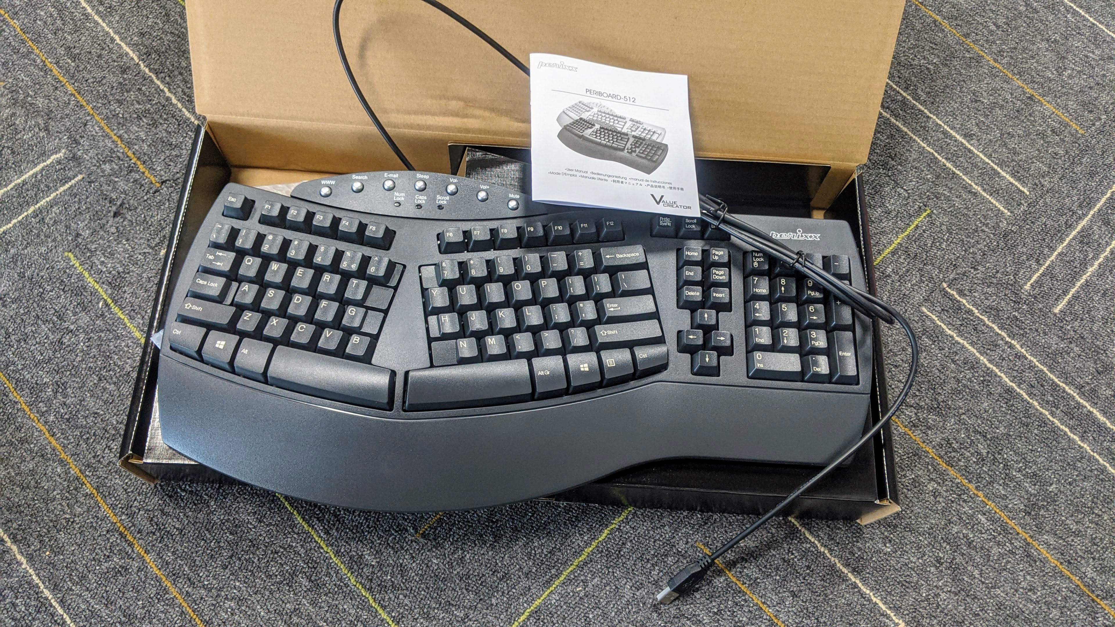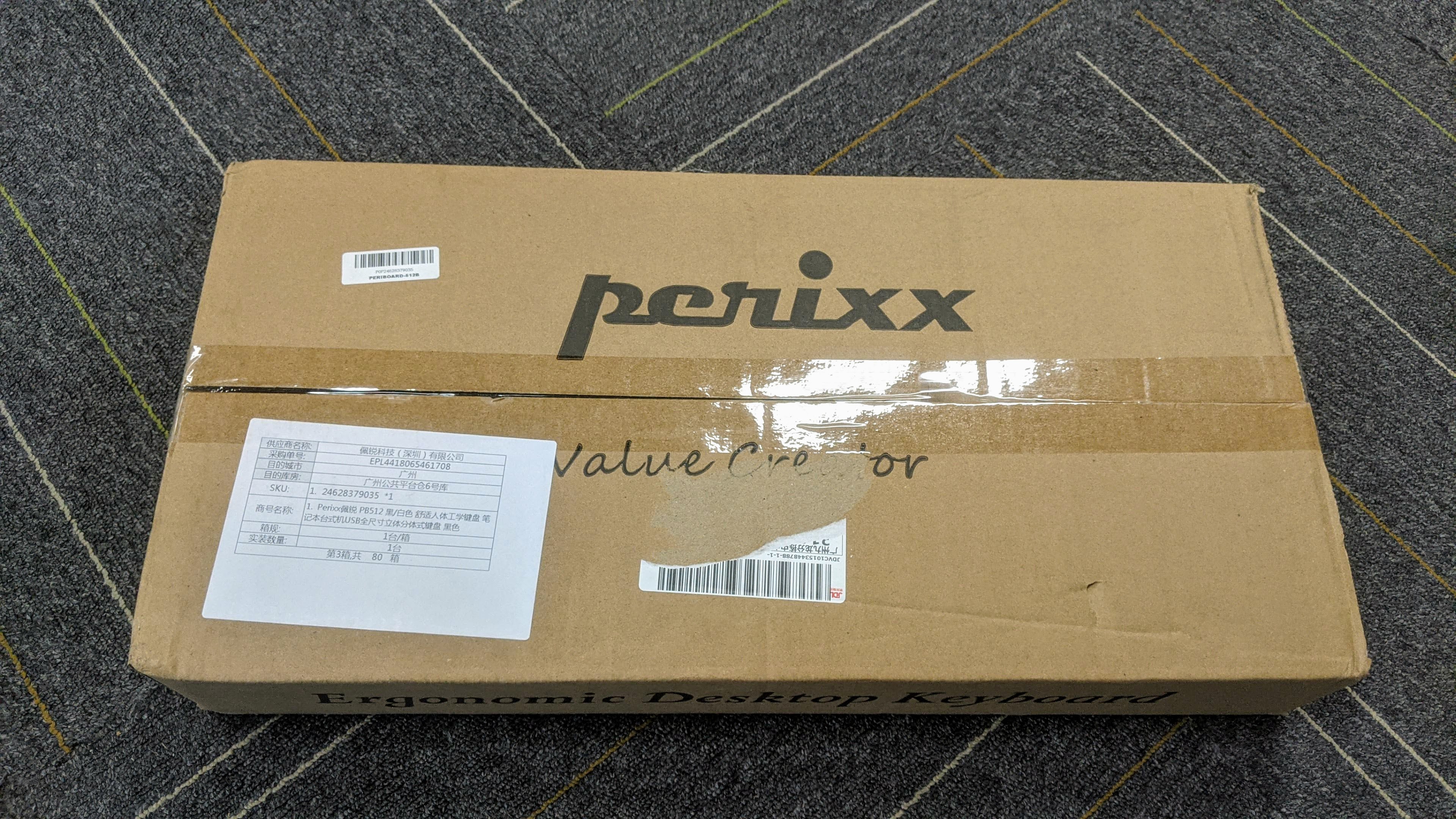这类具有人体工学设计特征的键盘其实早就在市面上有了,并且从罗技到微软再到普通小众品牌,都有很多可选,而考虑到性价比(尤其是我已经一堆键盘了,从我测评文章就能看到),我最终选择了京东上的一个爆款佩锐Perixx人体工学键盘PERIBOARD-512,旗舰店京东配送,182.98RMB到手,第三天送达了(非自营的京东配送就是比自营慢啊)。