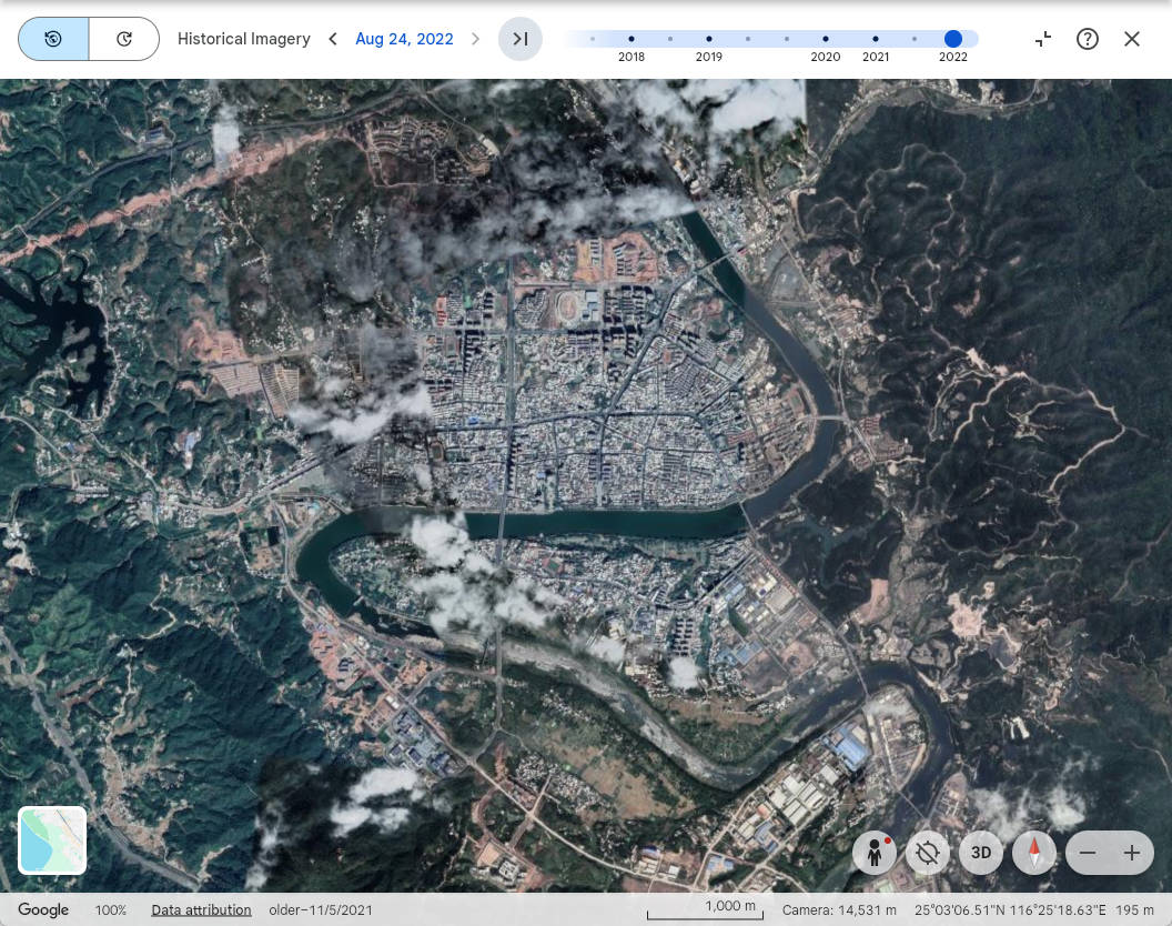 上杭县城,Google Earch 2022年卫星影像