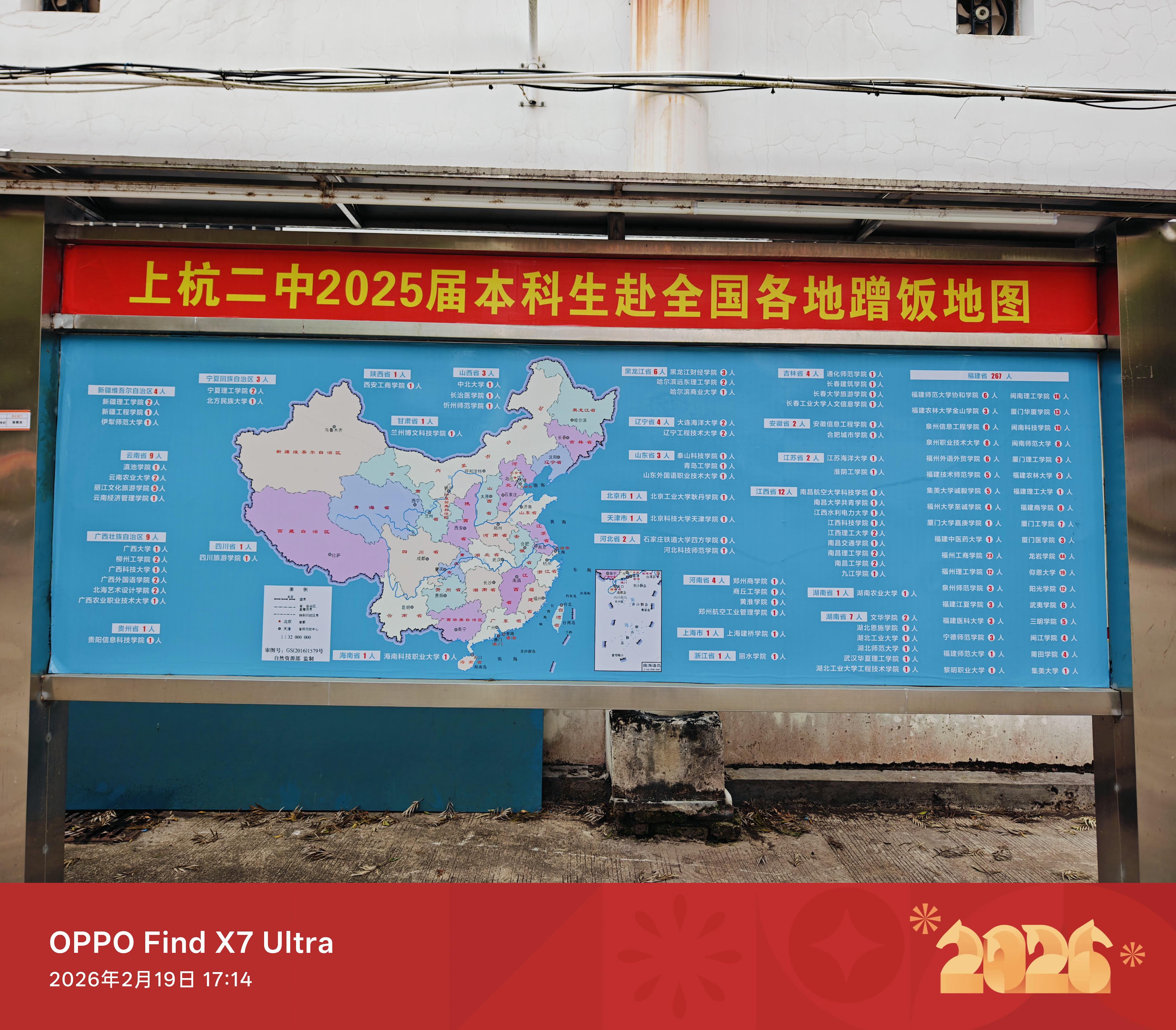 上杭二中2025届本科生赴全国各地蹭饭地图,显示从本校毕业的学子们的大学分布统计