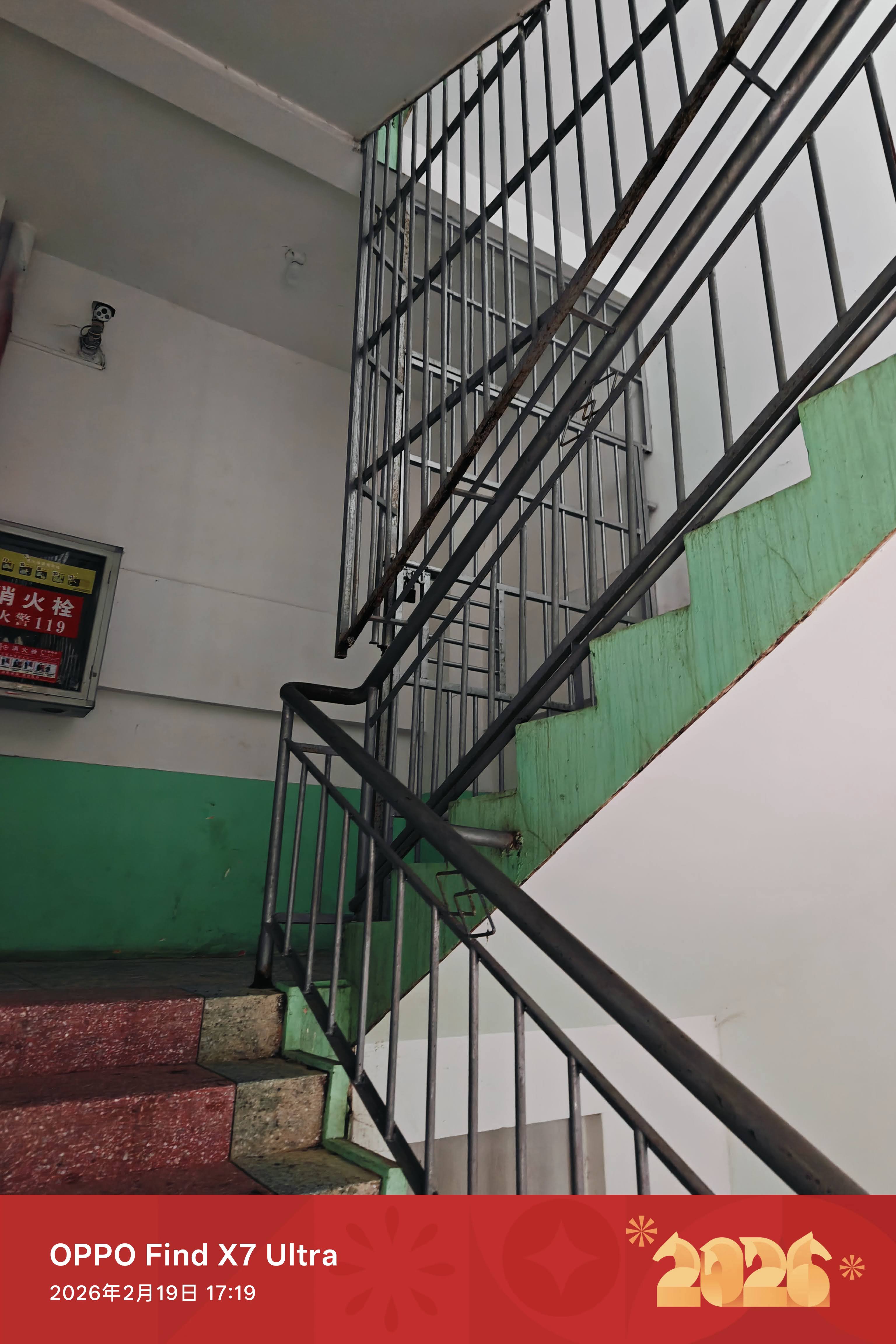 教学楼通往二楼的楼梯锁住了,无法上楼