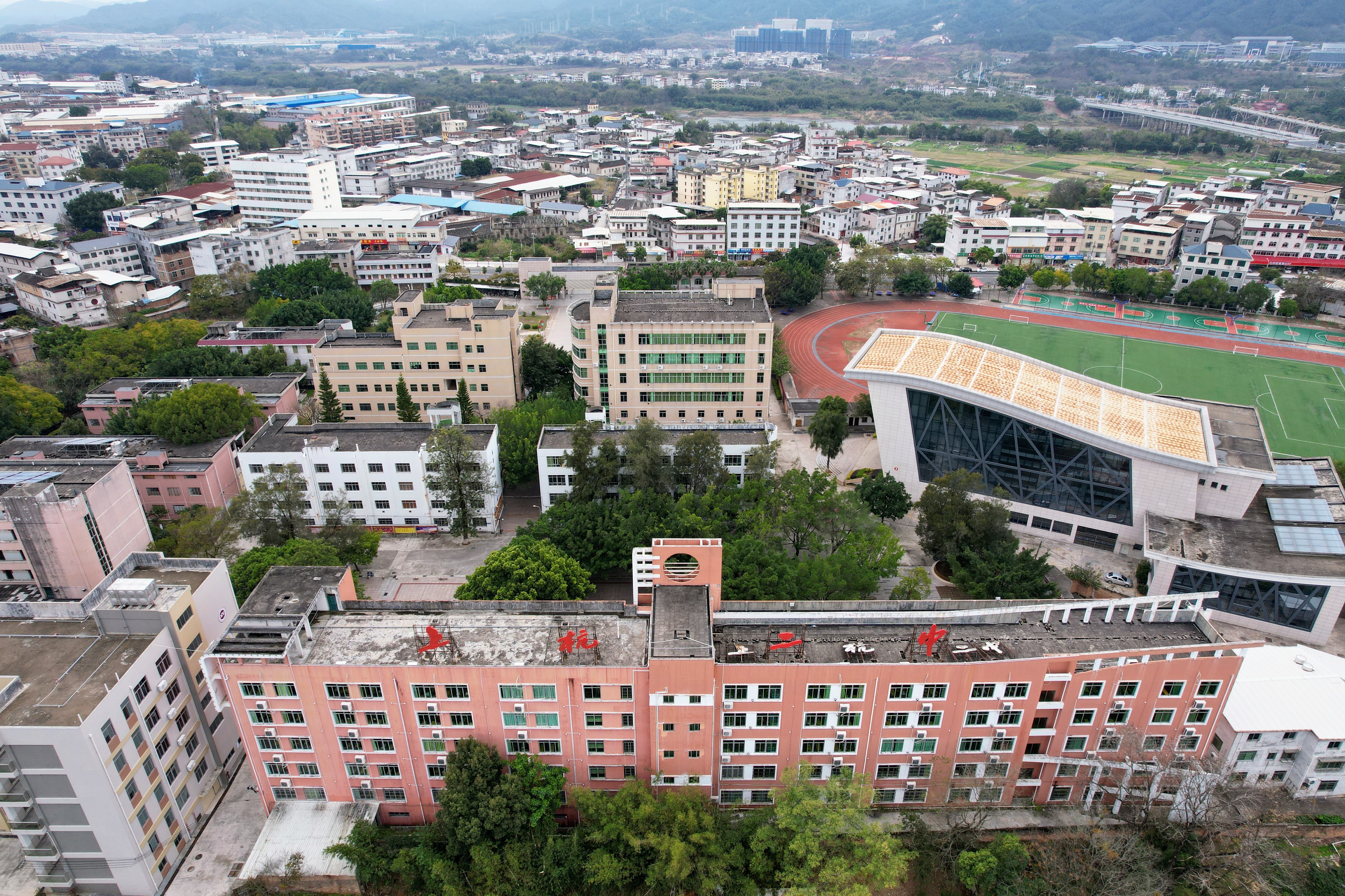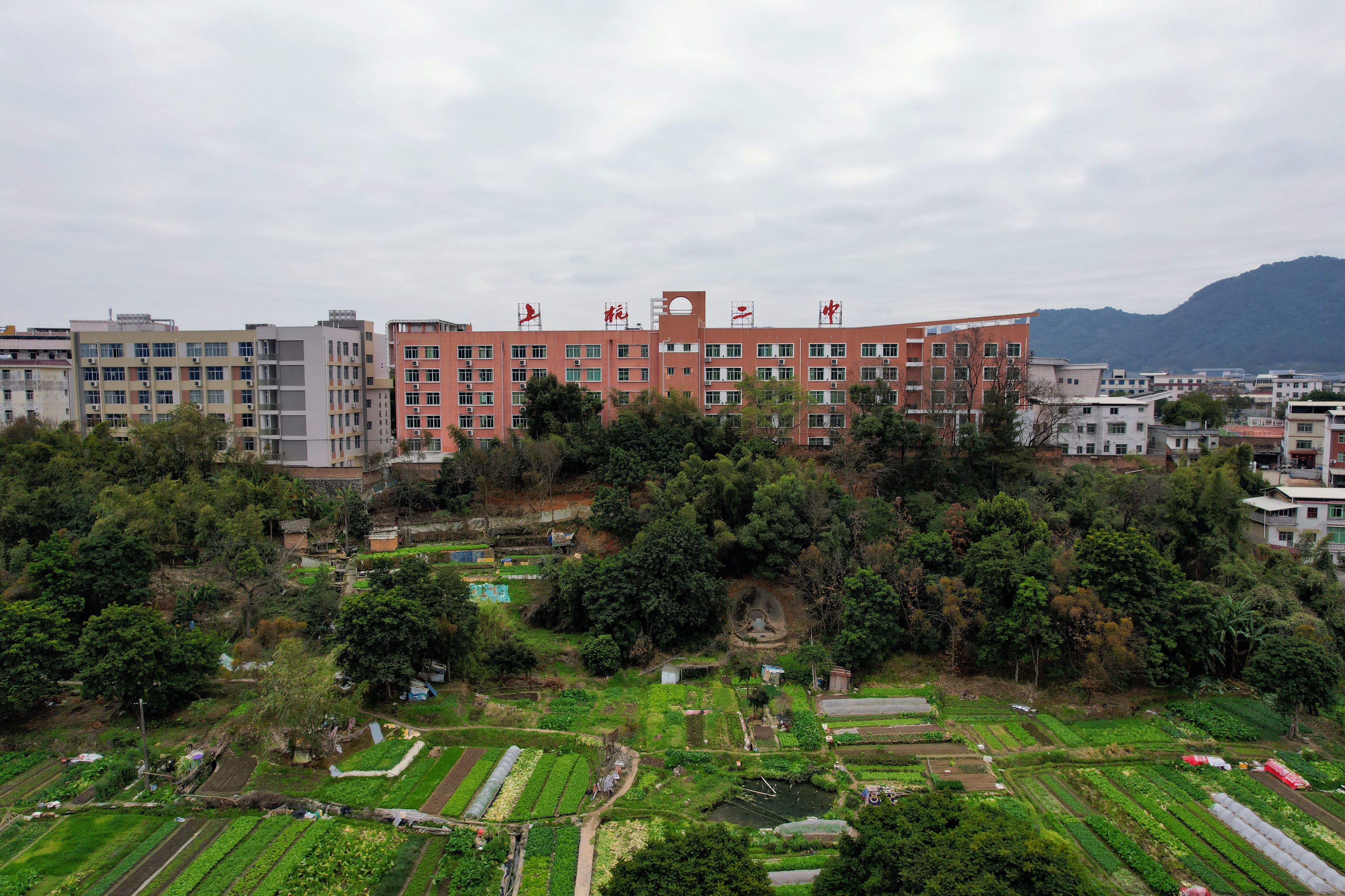 从县人民广场拍摄的上杭二中。拍摄于2008年10月