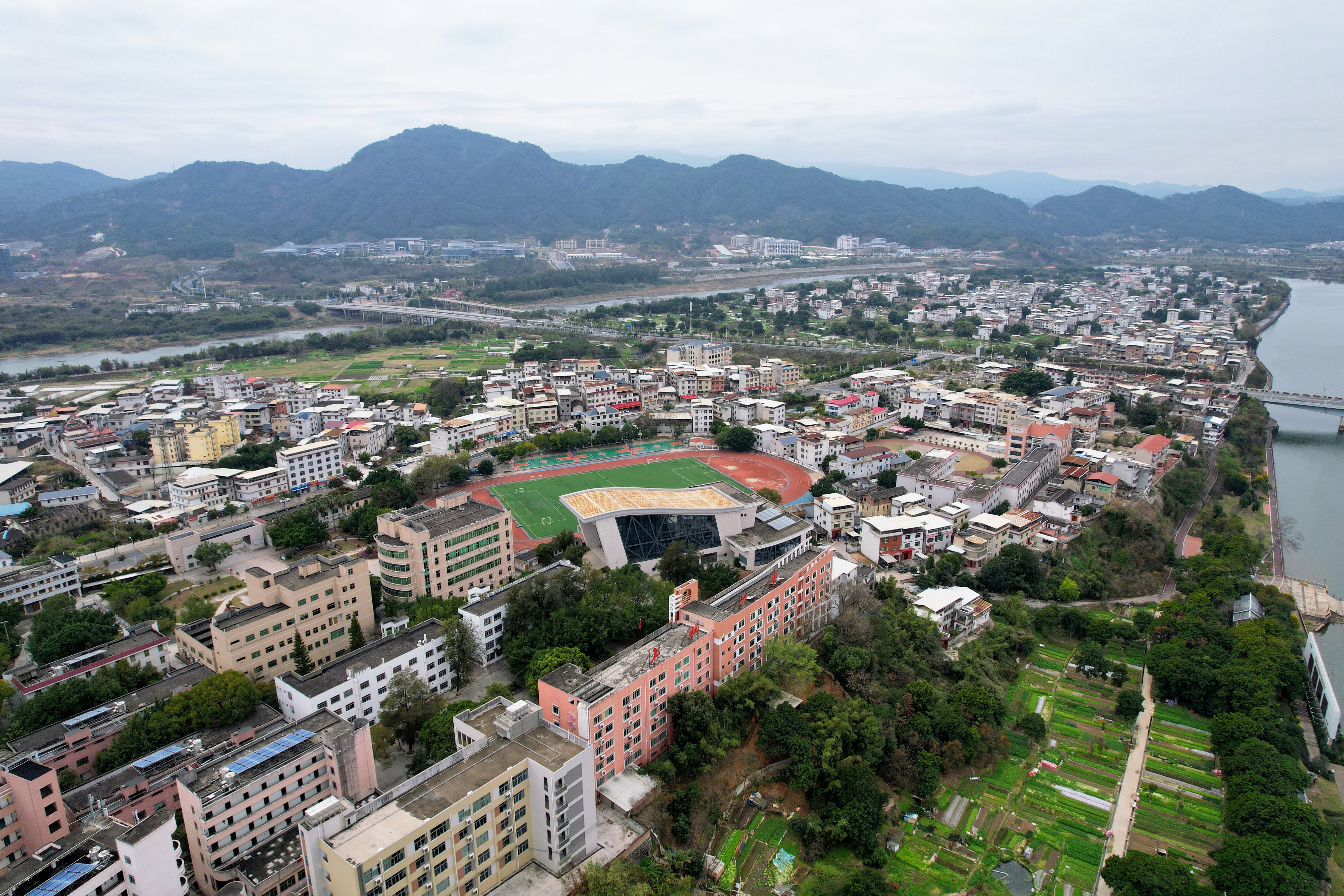 2022年2月,刚买无人机不久,正值正月去县城亲戚家串门,就顺便拍摄了母校: