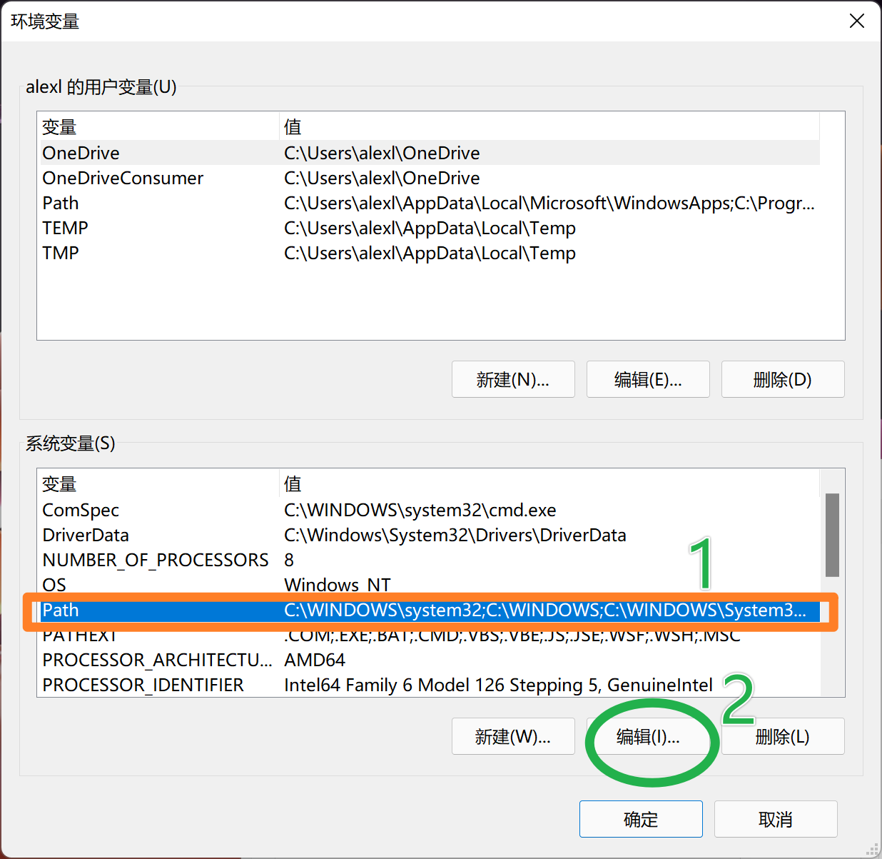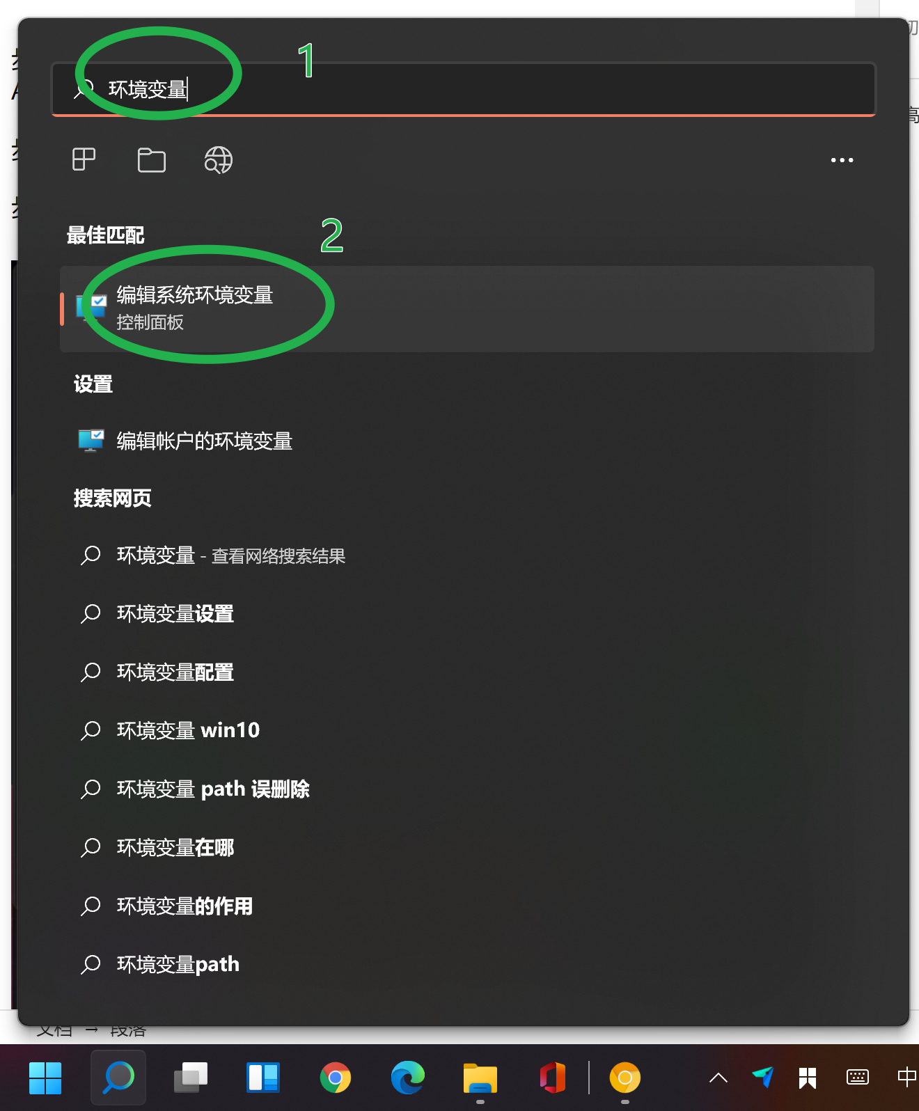 点击开始菜单,直接输入【环境变量】,点击下方的【编辑系统环境变量】