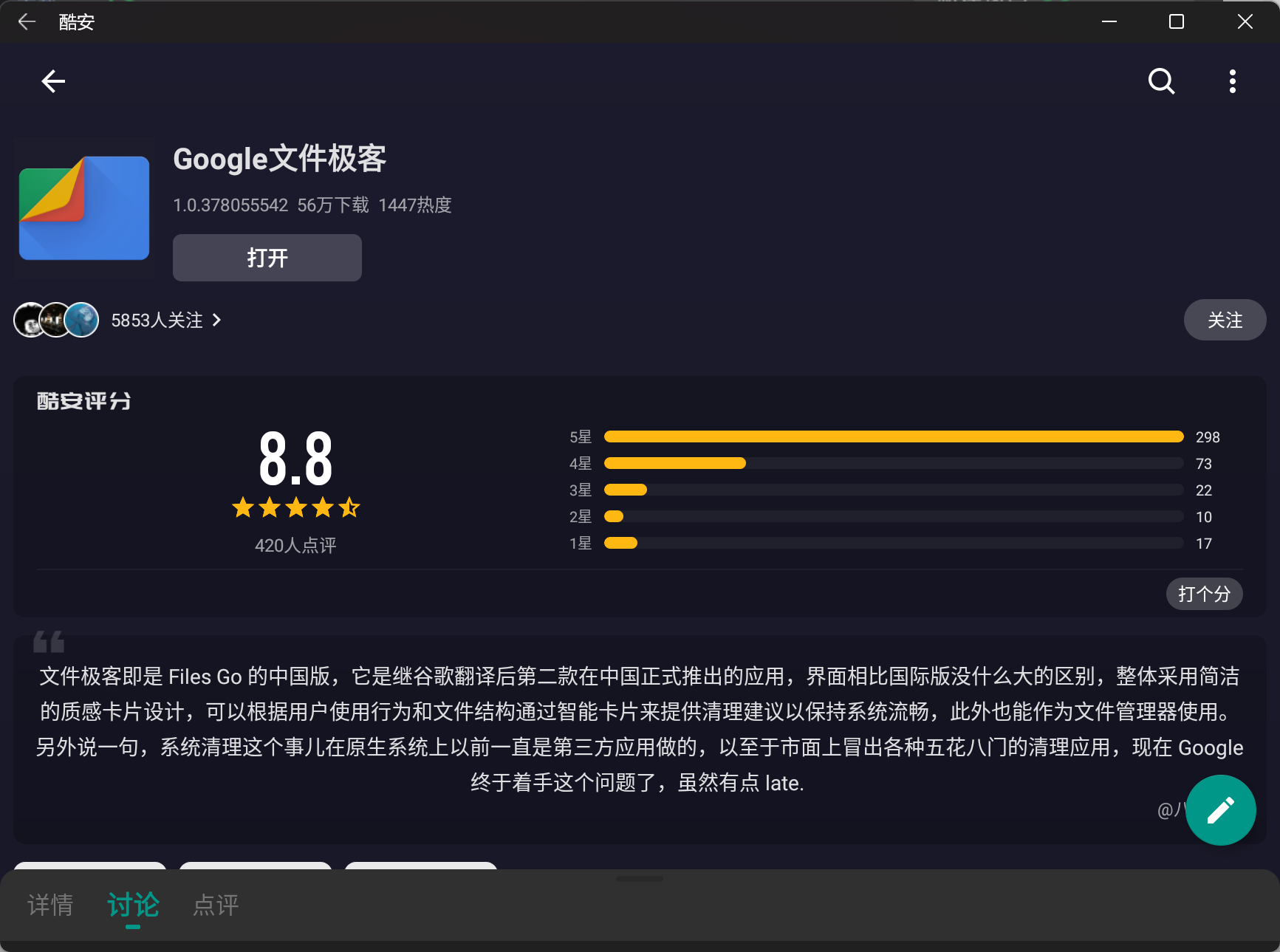 如果需要安卓的系统清理程序,可以在酷安搜索【文件极客】,它是安卓系统的开发公司谷歌为中国市场制作的文件清理工具。