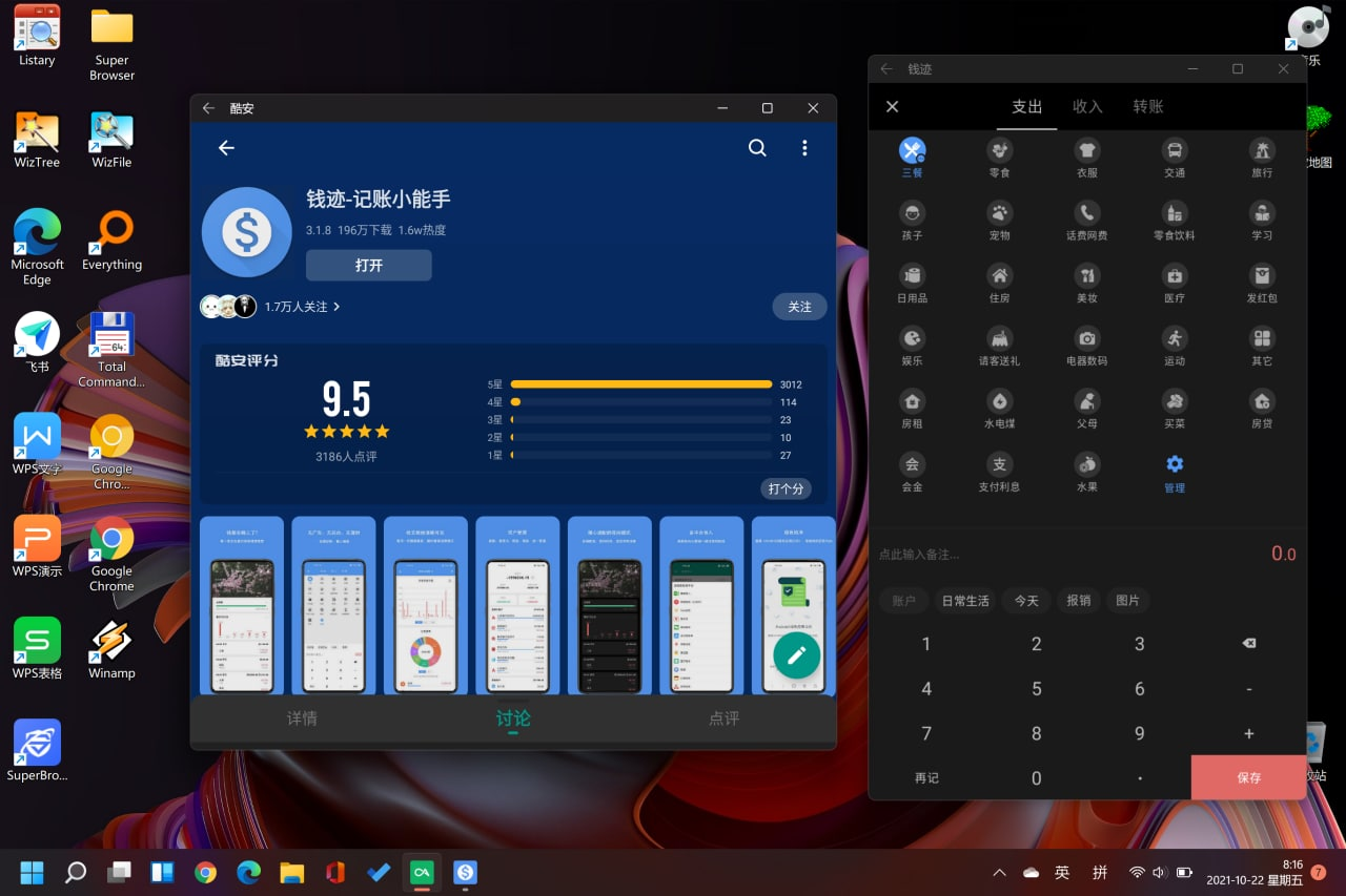 目前实测可以正常使用的应用(只测了一些,不表示其他的不能用),时间2021-12-05: