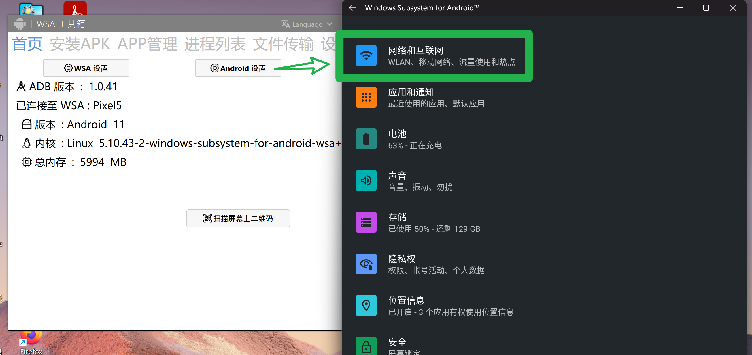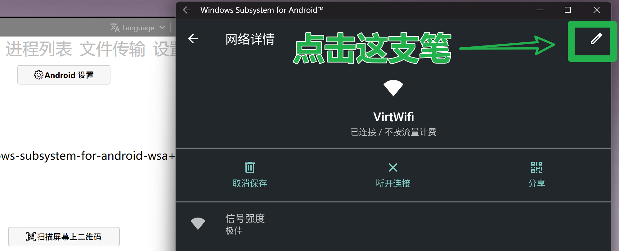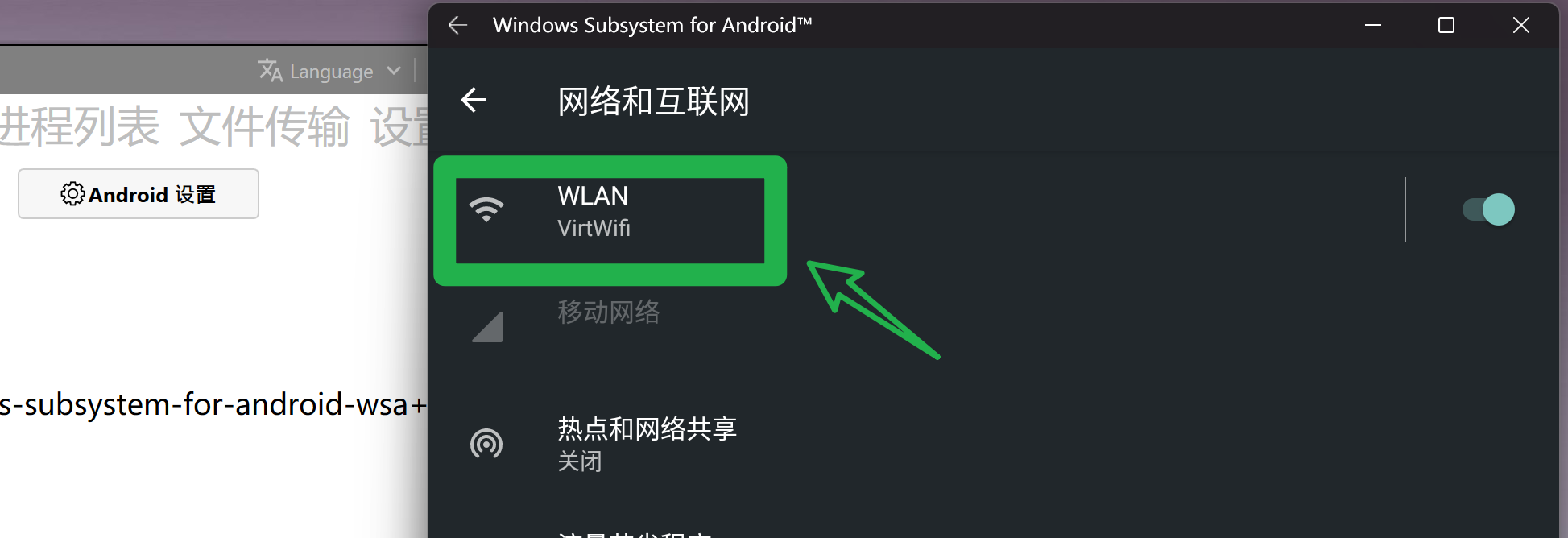 然后点击【WLAN】,WSA就是通过这个虚拟的WIFI来使用Windows的网络连接的
