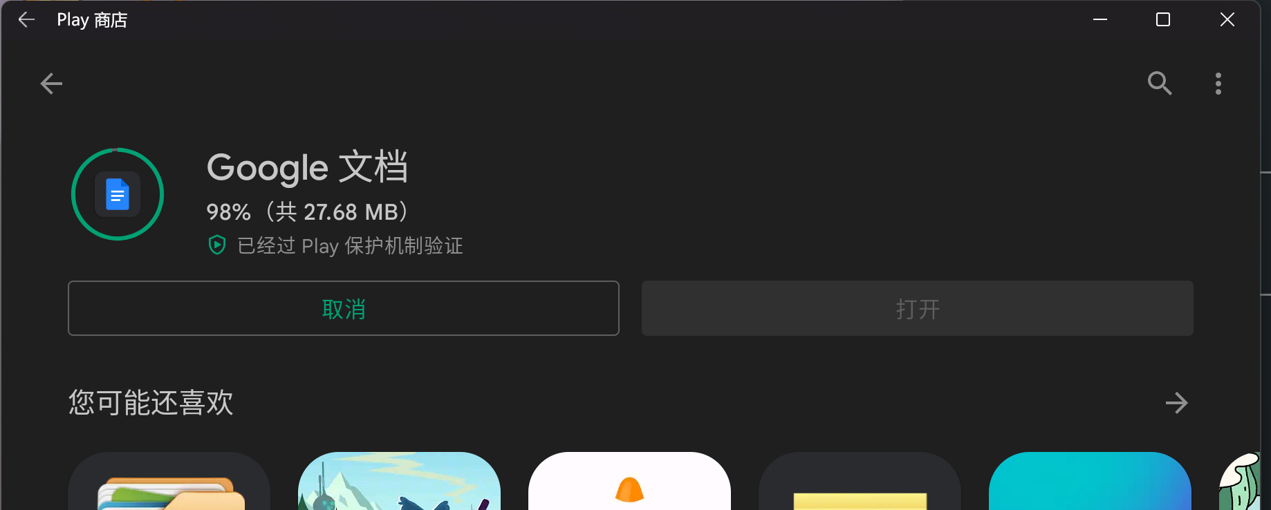 第一步:下载安装已经整合了Play服务框架和商店的WSA版本(本步骤学自《Windows 11安裝Google Play商店教學,WSA一鍵腳本》)