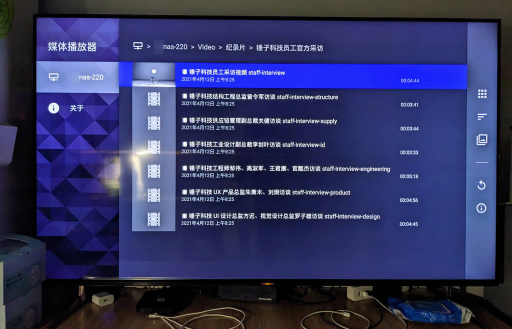 - 和小米电视一样,也支持浏览和播放我的群晖NAS里的电影等内容,而且由于机器性能的优势,它可以解码播放那些之前小米电视无能为力的高清电影文件