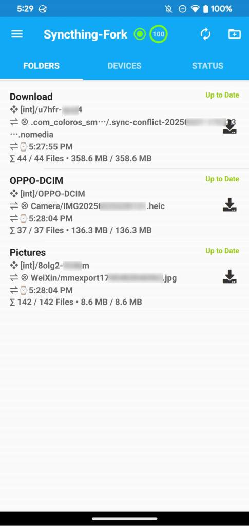 之前和朋友聊到利用Google Photos免费无限量备份照片的时候,朋友提到了这个Syncthing,可以跨多个平台实现文件夹同步,不限于是Mac、Windows电脑还是安卓手机,当时简单使用了下没有弄好,恰逢农历春节假期,需要考虑长假期间的照片及时备份的问题,于是琢磨了下,配合随身WiFi设备,实现主力拍照设备的照片每天及时自动同步到Pixel 4 XL,然后Pixel 4 XL则自动备份到谷歌相册,实际使用下来,很满意!