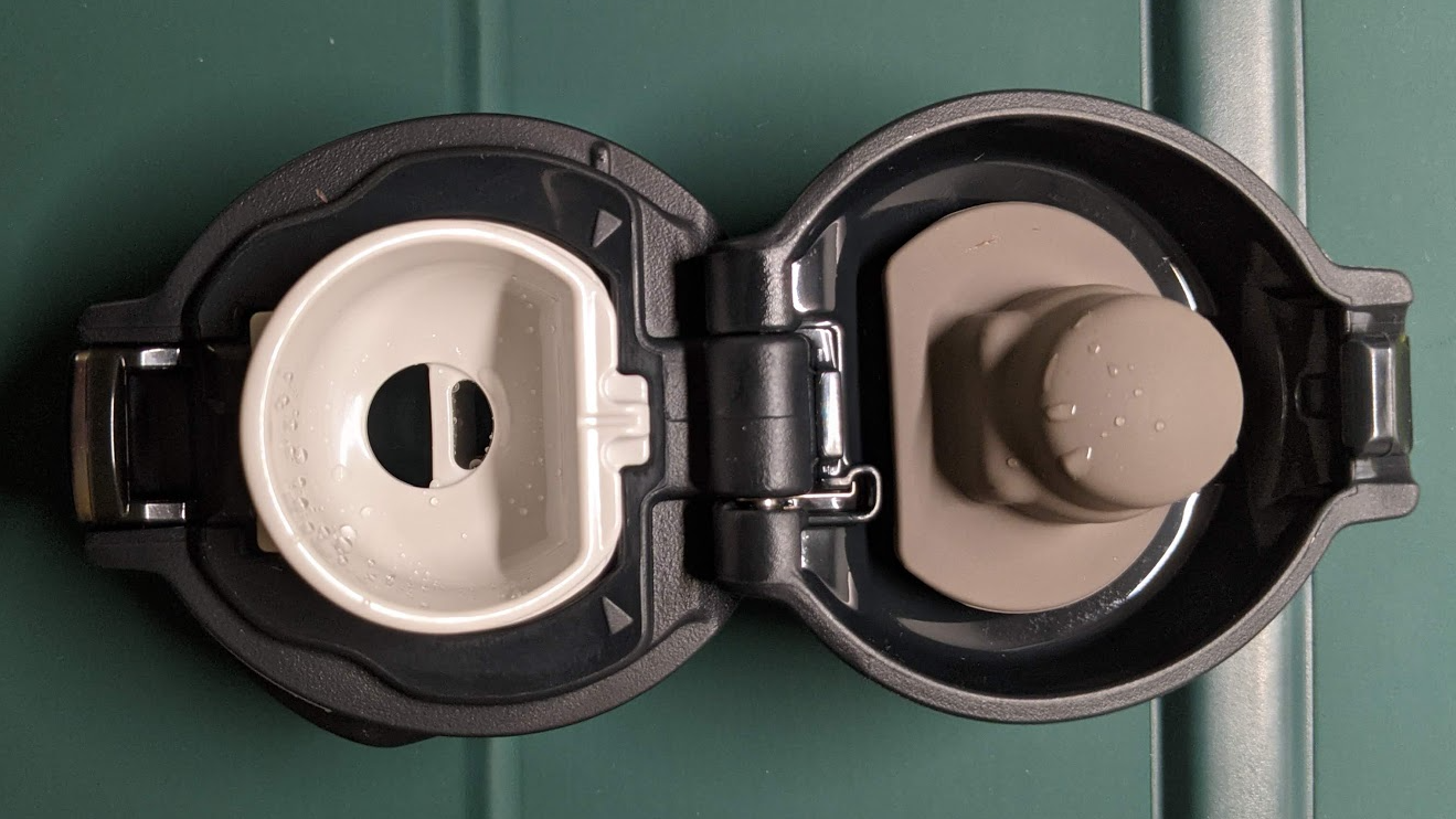 能单手操作完成开启、关闭和锁定,这是这个水壶吸引我的重要功能,其他诸如膳魔师、虎牌的产品,市场上能买的,几乎都没这个设计,试想下出门在外面有些时候一只手已经在做别的事情例如地铁里扶着杆子或拿着手机,就可以单手完成【取出水壶,解锁、一键弹开盖子、喝完合上盖子、锁定盖子、放回背包或袋子】的一系列动作。
