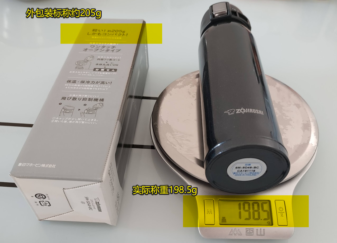 4. 水壶很轻(标称205g,实际用家用电子秤称重198.6g),便于携带